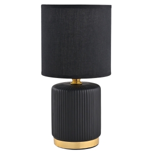 Lampka nocna czarna ze złotymi detalami to doskonałe połączenie klasyki i subtelnego luksusu. Ceramiczna podstawa o ryflowanej strukturze oraz materiałowy abażur tworzą harmonijną całość, która idealnie sprawdzi się jako lampa stołowa do sypialni, eleganckie oświetlenie salonu lub nastrojowe światło na komodzie. Model HS8270-BL zapewnia przyjemne, rozproszone światło i podkreśla charakter wnętrza bez dominowania aranżacji.