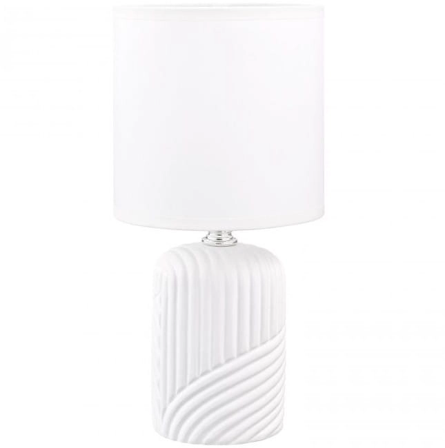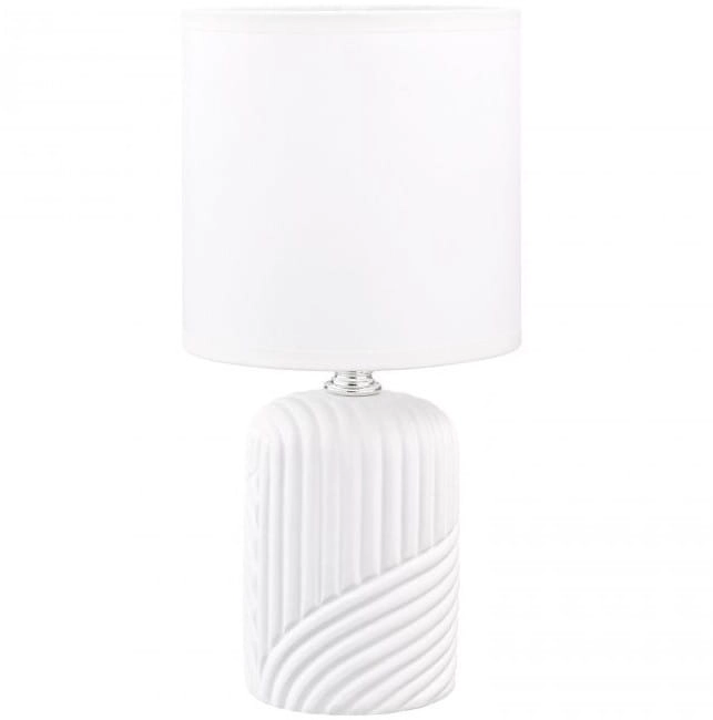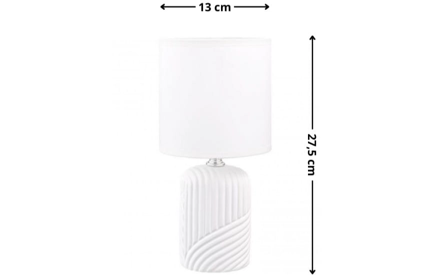 Lampa stołowa nowoczesna w kolorze białym to ponadczasowe rozwiązanie do eleganckich wnętrz. Ceramiczna podstawa o dekoracyjnej fakturze oraz klasyczny abażur z tkaniny tworzą harmonijną całość, która idealnie sprawdzi się jako lampka nocna do sypialni, oświetlenie na komodę lub lampa dekoracyjna do salonu. Subtelne światło buduje przytulną atmosferę i podkreśla charakter aranżacji.