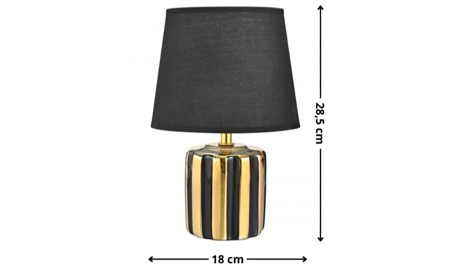 Lampa stołowa czarno złota to połączenie nowoczesnej formy i eleganckiego wykończenia, które natychmiast przyciąga wzrok. Ceramiczna podstawa w złotym połysku zestawiona z czarnym abażurem z tkaniny tworzy efekt luksusowego dodatku do wnętrza. To dekoracyjna lampa do salonu i sypialni, która nie tylko oświetla przestrzeń, ale również buduje klimat i podkreśla charakter aranżacji.