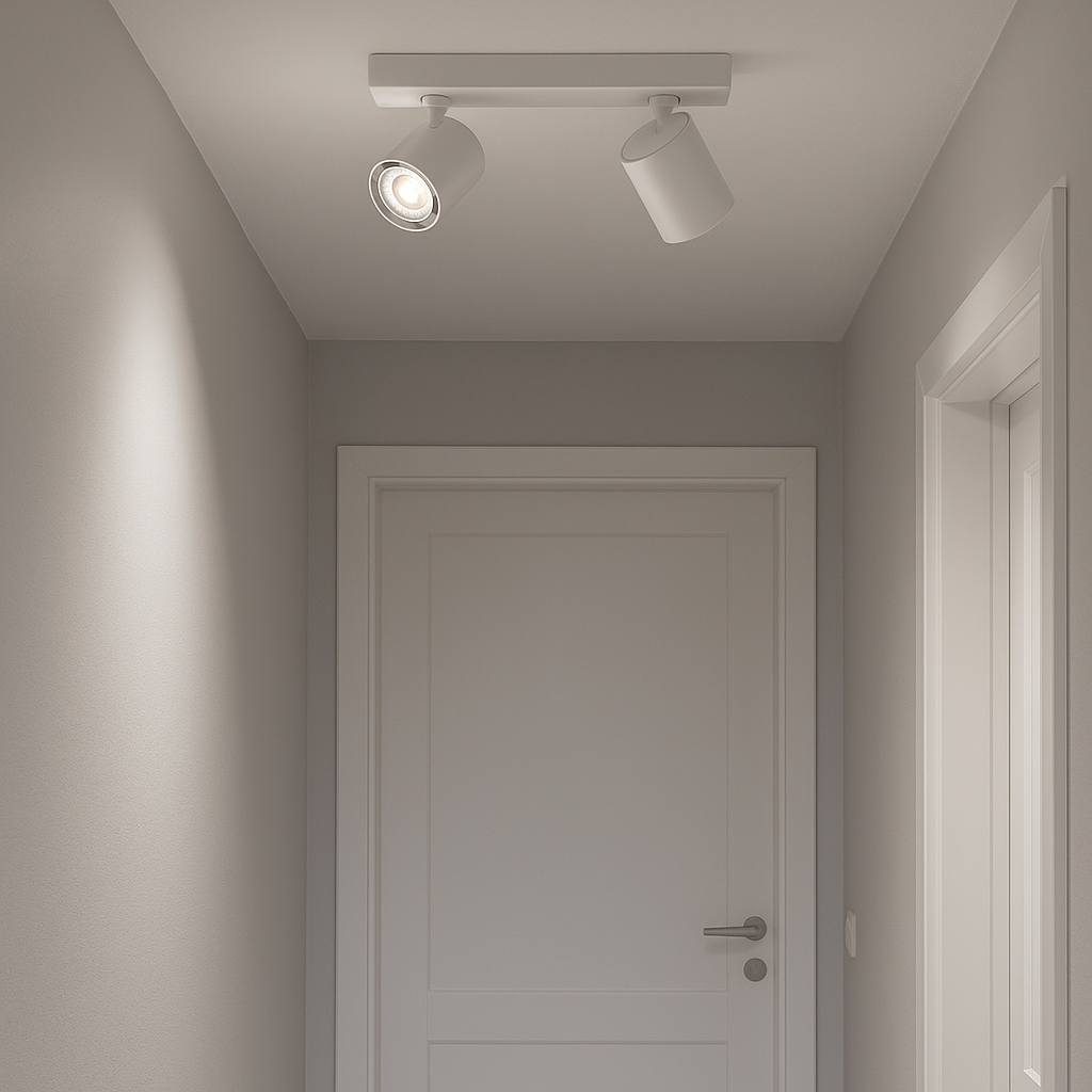 Listwa wyposażona jest w dwa regulowane reflektory GU10, które umożliwiają dowolne kierowanie światłem. To rozwiązanie docenią zarówno miłośnicy punktowego oświetlenia dekoracyjnego, jak i osoby szukające praktycznego źródła światła do pracy lub relaksu.