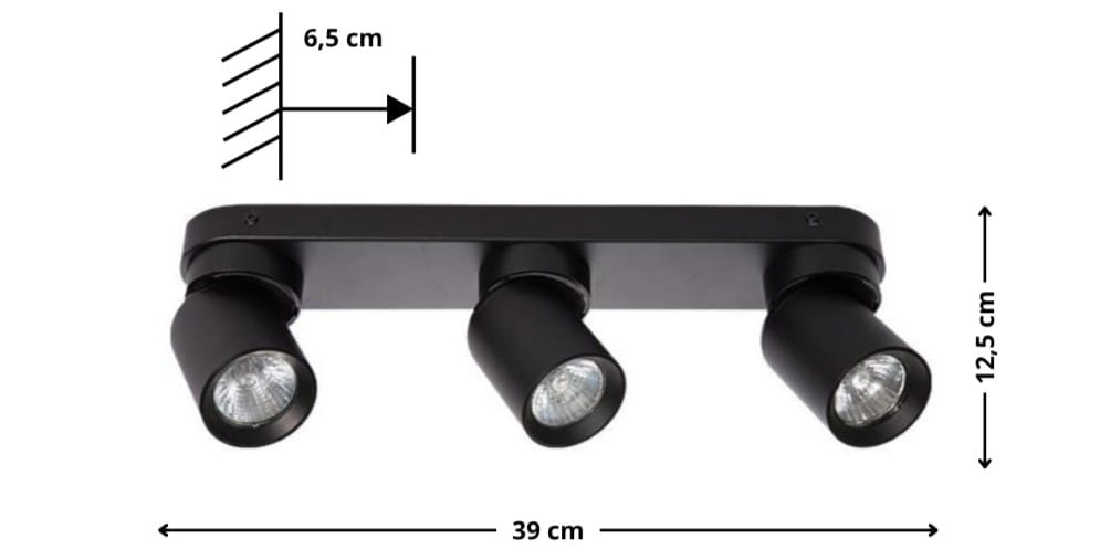 - 3 źródła światła GU10 – pełna swoboda w doborze barwy i mocy żarówek.