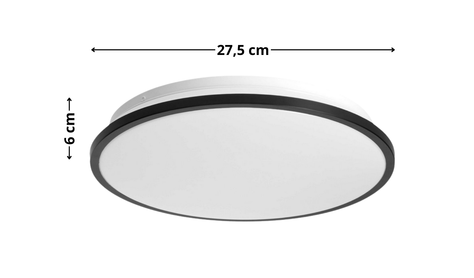 Elegancki, czarny plafon LED o średnicy 27,5 cm pasuje do wnętrz nowoczesnych, minimalistycznych i loftowych. Sprawdzi się zarówno jako główne źródło światła w mniejszych pomieszczeniach, jak i element kompozycji świetlnej w większych przestrzeniach.