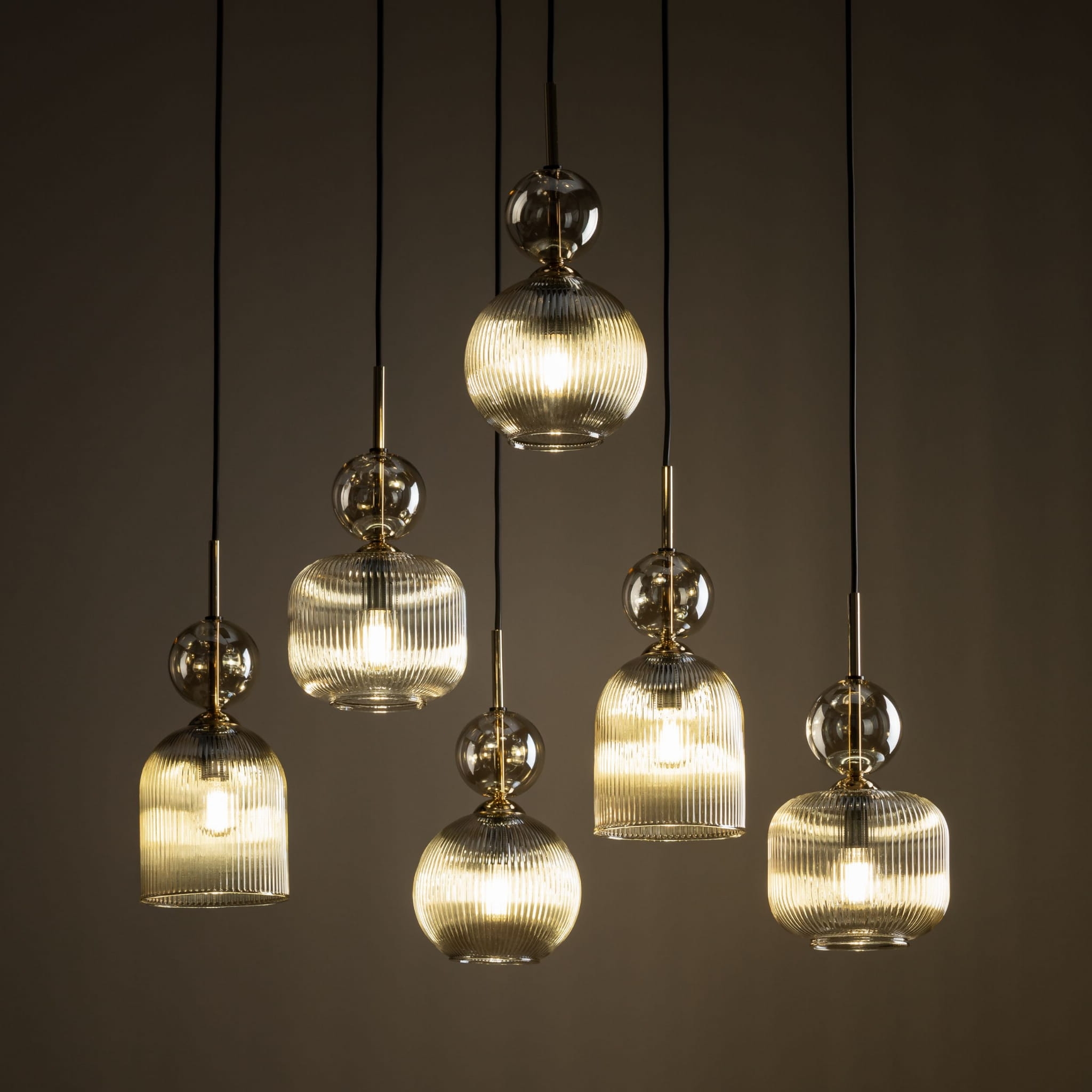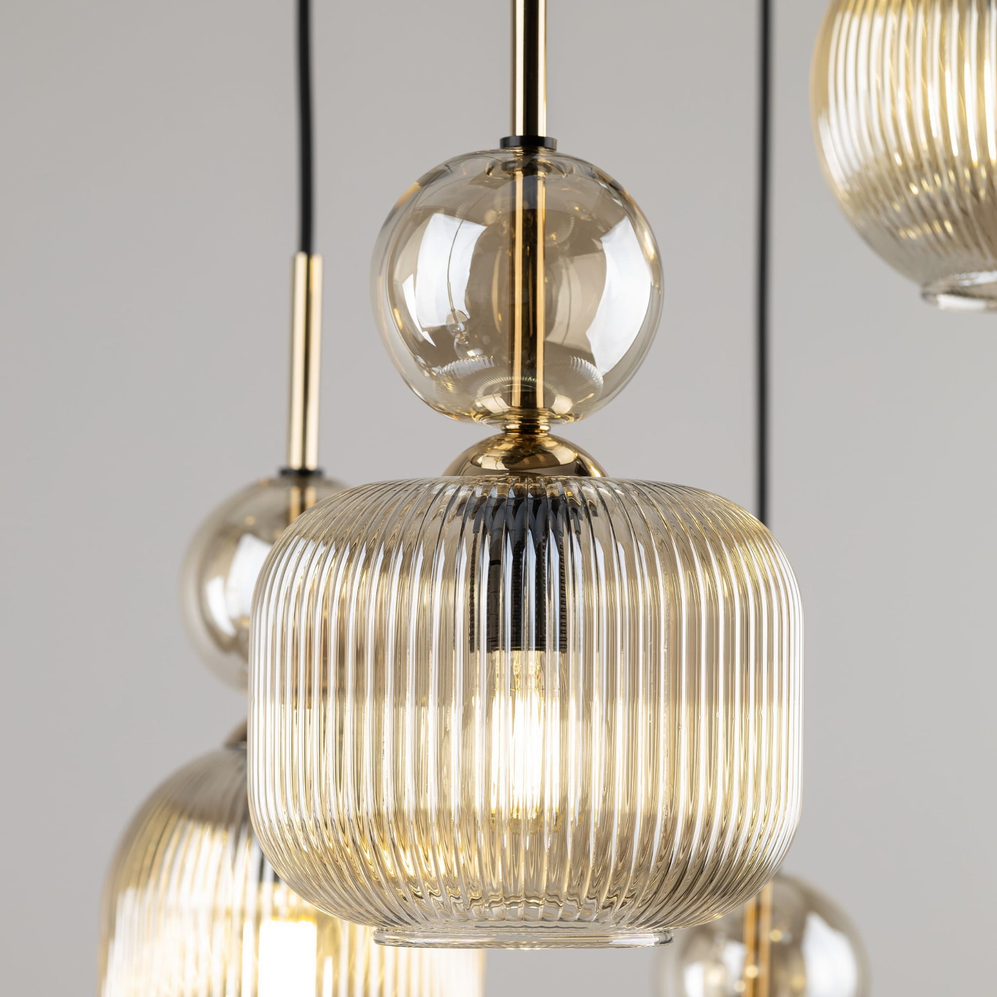 - Bursztynowe, ryflowane szkło – zyskujesz nastrojową atmosferę, ponieważ struktura kloszy pięknie rozprasza światło, eliminując efekt oślepienia.