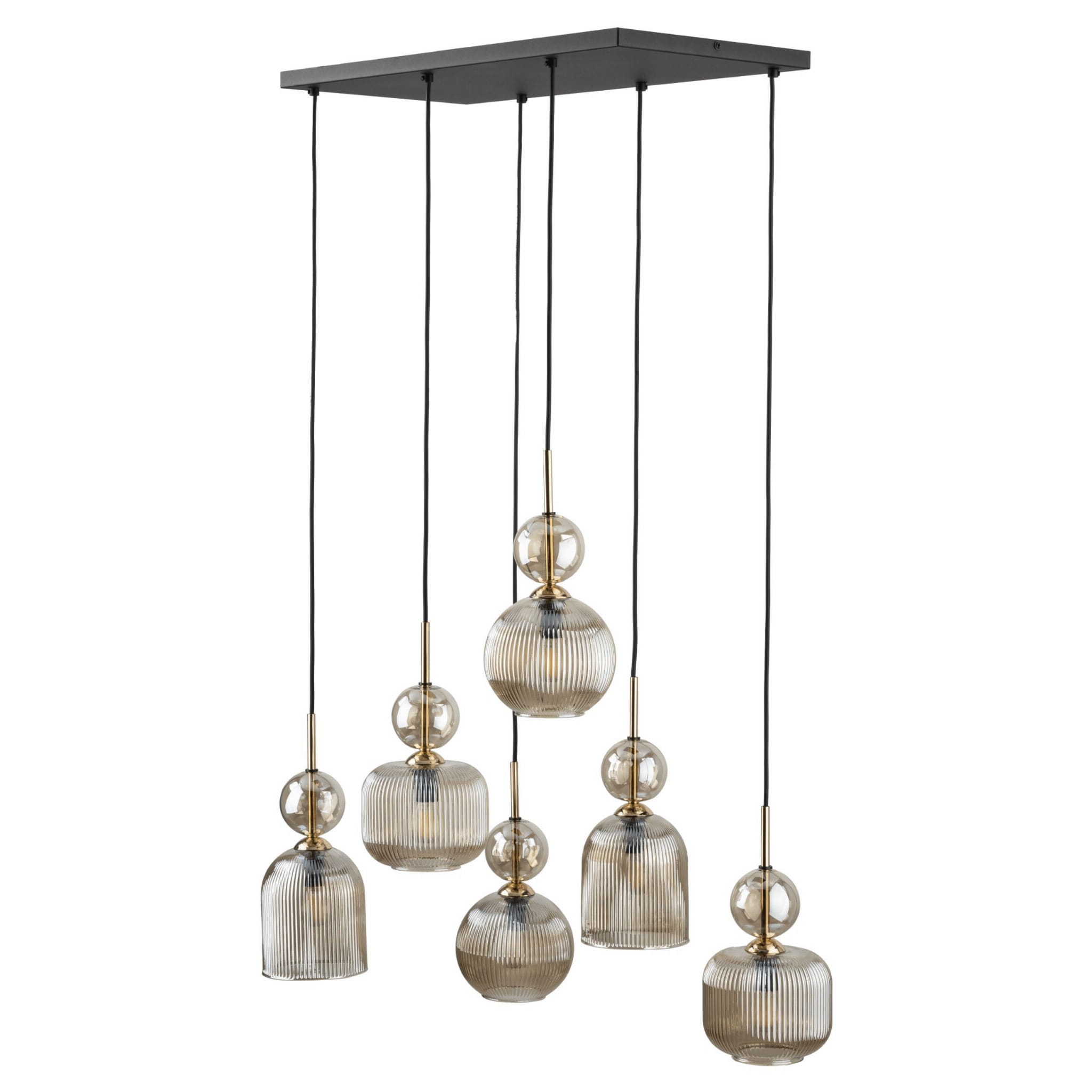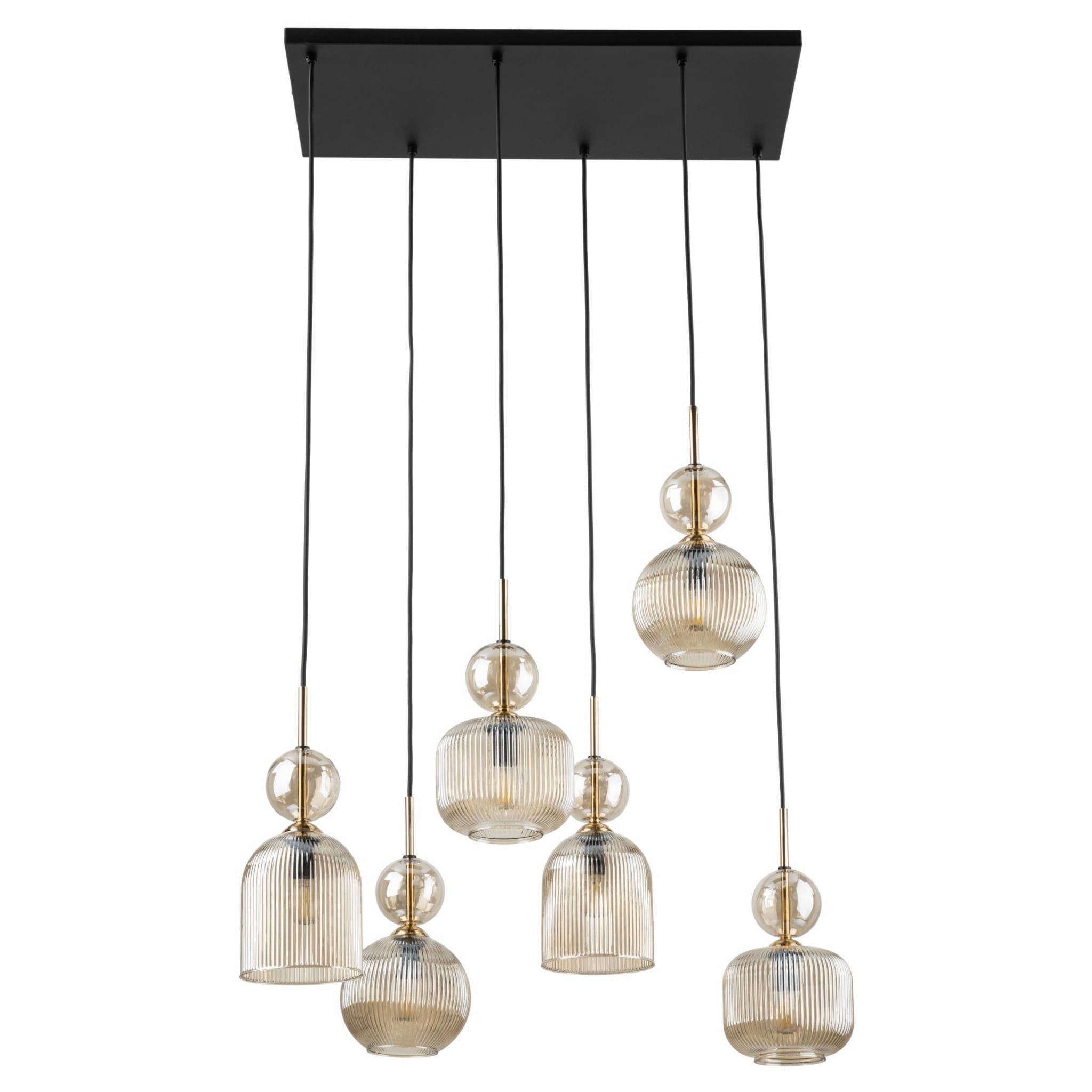Szukasz elementu, który nie tylko oświetli Twój dom, ale stanie się jego centralną dekoracją? Oświetlenie nad stół do jadalni w formie kaskadowej lampy Sophia to połączenie surowej, czarnej stali z luksusowym złotem i ciepłym odcieniem szkła. Dzięki zastosowaniu sześciu punktów świetlnych, żyrandol z bursztynowymi kloszami wypełnia przestrzeń miękkim, kojącym blaskiem, tworząc efektowne oświetlenie sufitowe, które zachwyca gości już od progu. Ta lampa wisząca kaskadowa idealnie komponuje się z naturalnym drewnem i betonem, wprowadzając ciepłe światło w domu tam, gdzie najbardziej go potrzebujesz.