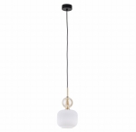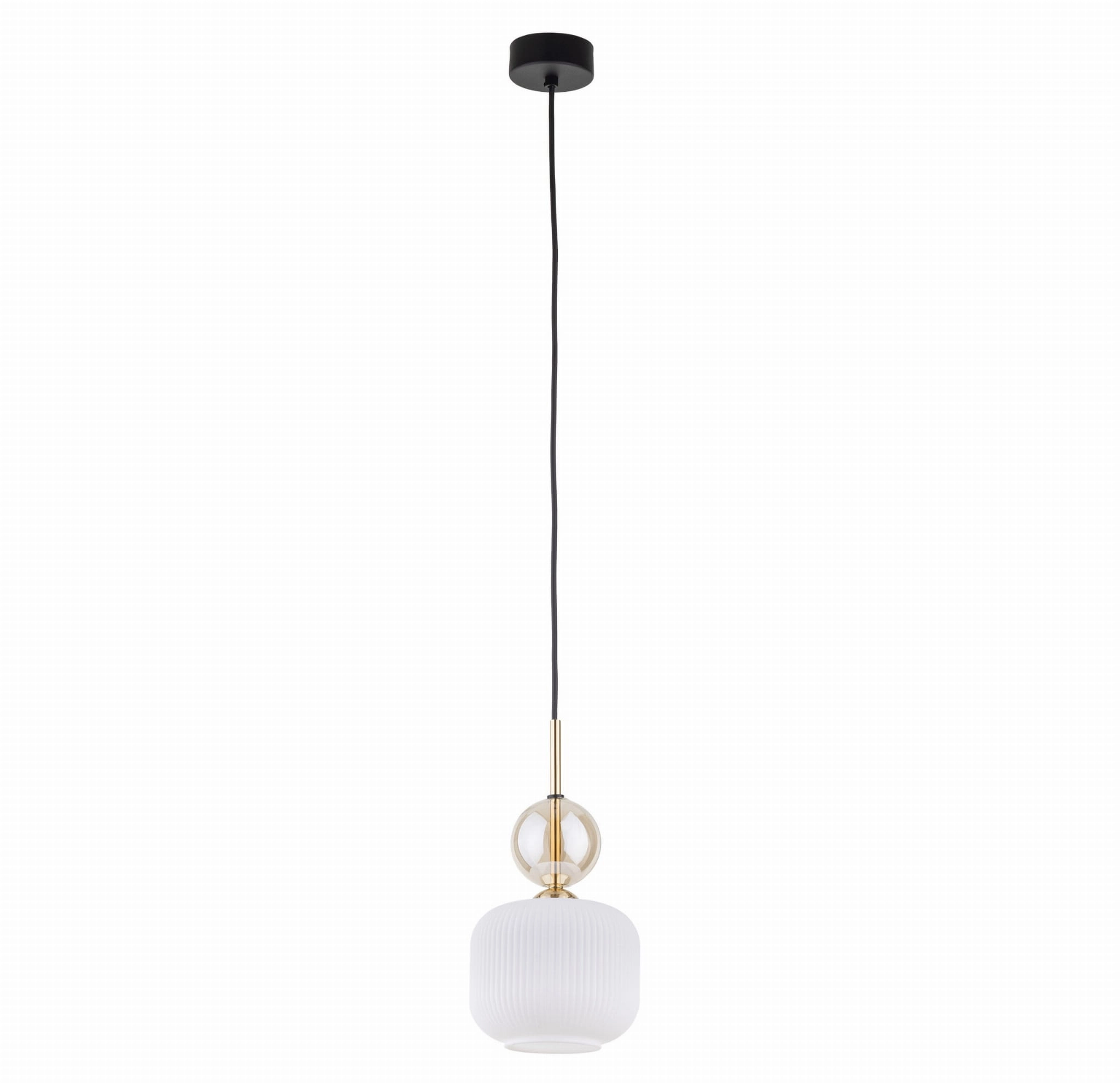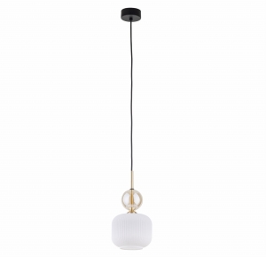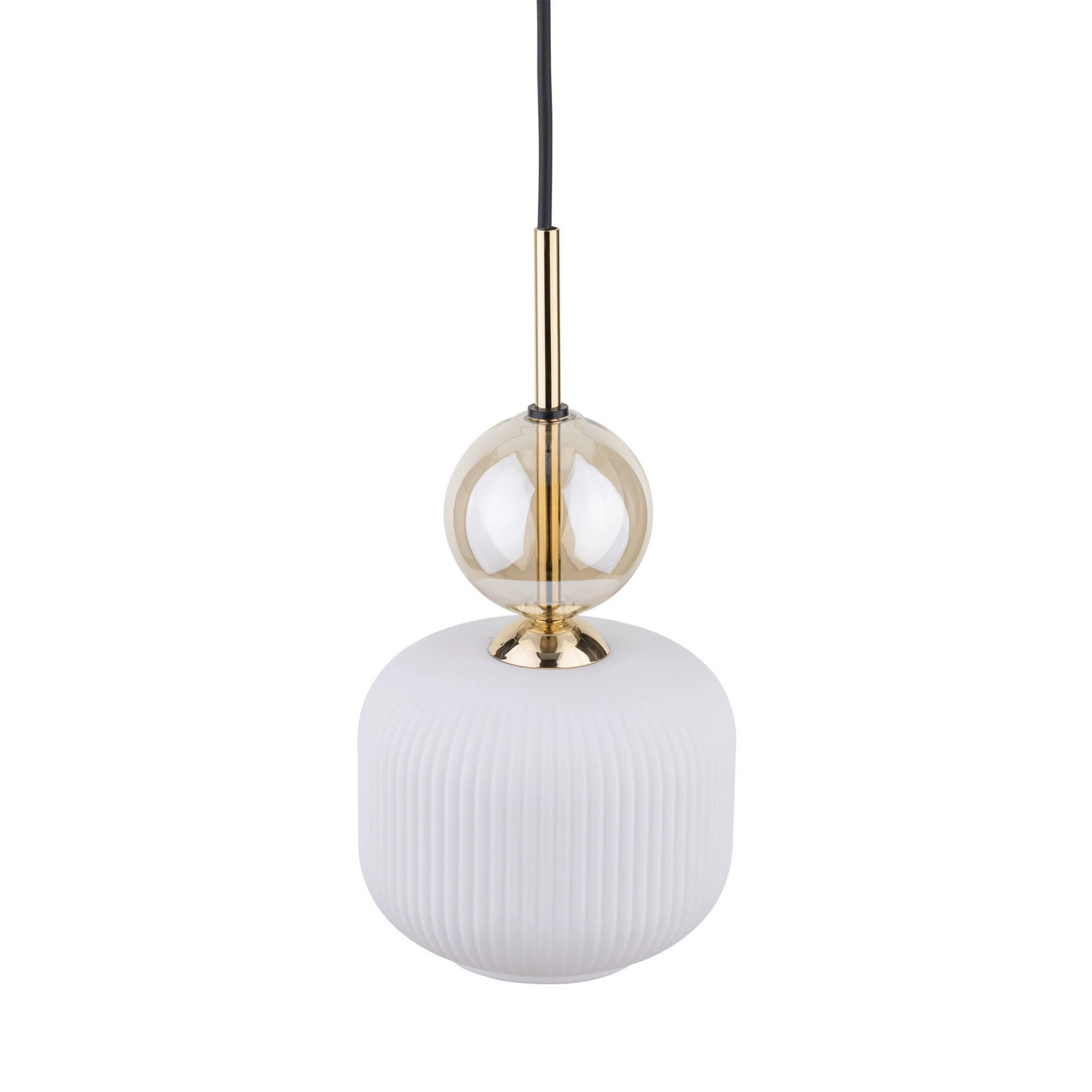 Ten model to coś więcej niż lampa wisząca – to przemyślana kompozycja form i faktur. Połączenie gładkiego, bursztynowego szkła z białym, ryflowanym kloszem tworzy designerską oprawę, która przyciąga wzrok nawet przy zgaszonym świetle. Dzięki regulowanej długości przewodu, produkt idealnie sprawdzi się jako oświetlenie nad wyspę lub nastrojowy punkt świetlny w strefie wypoczynku.