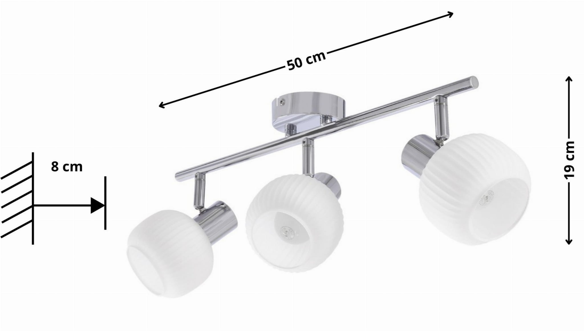 ✨ Lampa sufitowa ANDRUS srebrna – listwa 3xE14, szklane klosze, chrom
