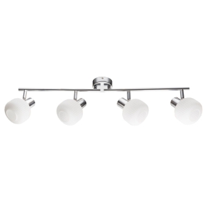 Lampa sufitowa ANDRUS srebrna to elegancka listwa 4xE14 z chromowanym wykończeniem i szklanymi kloszami. Szerokość 76 cm i smukła głębokość 8 cm zapewniają wygodne, równomierne oświetlenie sufitowe nad stołem, wyspą kuchenną czy w długim korytarzu. To nowoczesna lampa sufitowa, która łączy estetykę z funkcjonalnością i łatwo wpisuje się w różne aranżacje.