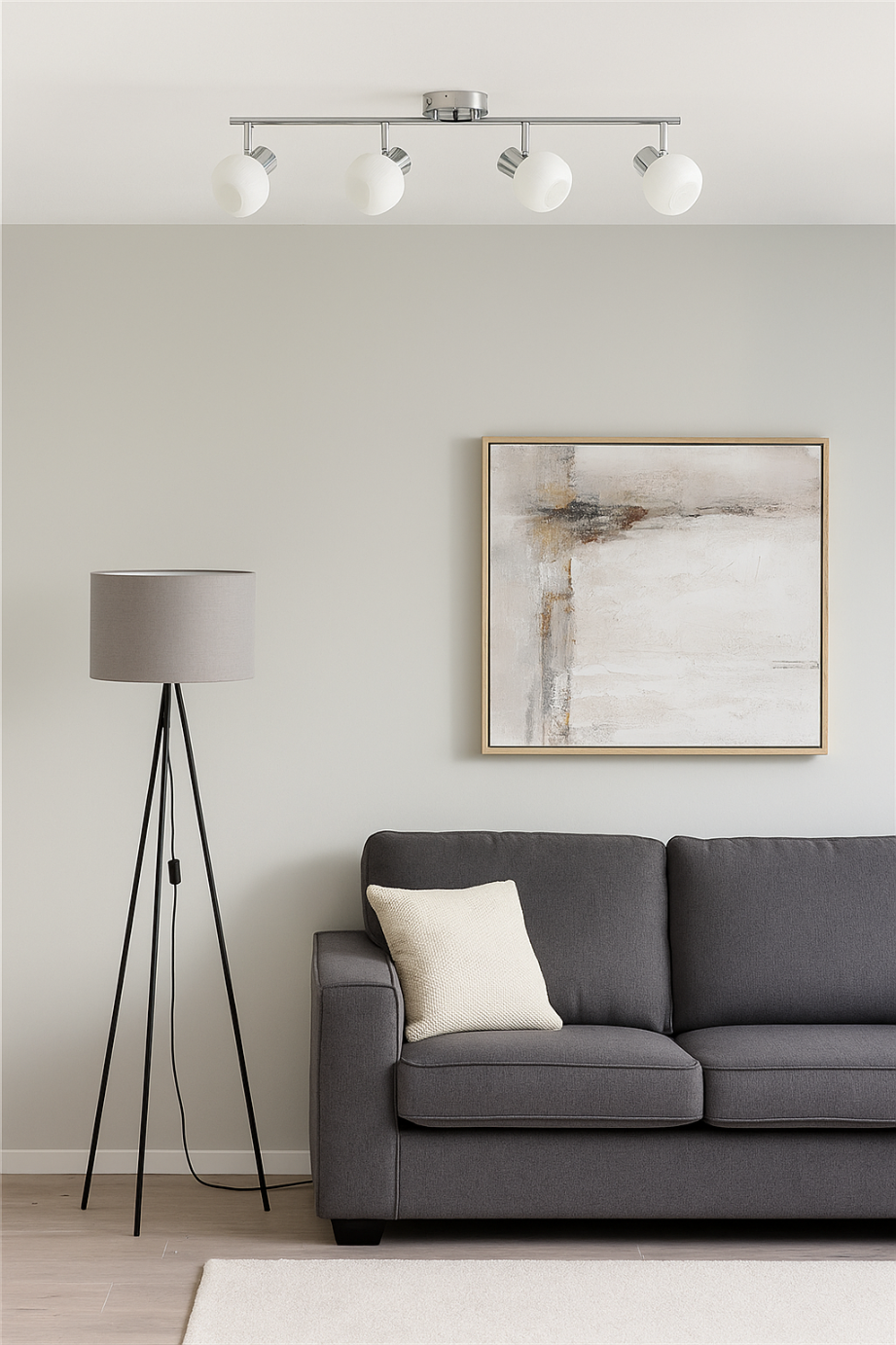 ANDRUS łączy ponadczasową elegancję z praktycznym światłem. Cztery oprawki E14 pozwalają dopasować barwę i intensywność do potrzeb: ciepłe światło do relaksu w salonie, neutralne do jadalni, jaśniejsze do oświetlenia kuchennego lub korytarza. Szklane klosze dbają o komfort wzrokowy, a srebrne, chromowane wykończenie dodaje wnętrzu lekkości i klasy.