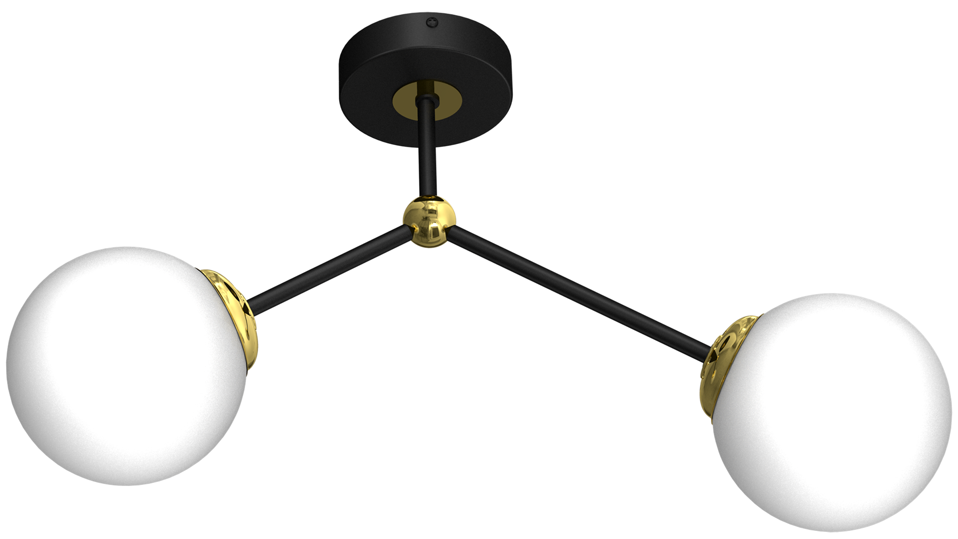 Lampa sufitowa JOY 2 czarna złota to połączenie nowoczesnego designu i ponadczasowej elegancji. Dwa kuliste klosze z białego szkła subtelnie rozpraszają światło, tworząc przytulny klimat w pomieszczeniu, a czarna oprawa z złotymi detalami świetnie wpisuje się w modne wnętrza w stylu glamour oraz nowoczesnym. To idealna lampa sufitowa do salonu i jadalni, która pięknie prezentuje się także w korytarzu czy sypialni.