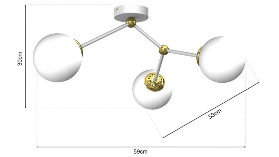 Lampa charakteryzuje się pięknym rozproszeniem światła dzięki trzem kloszom z mlecznego szkła, co tworzy przytulną atmosferę w salonie, jadalni czy sypialni. Jej kompozycja sprawia, że świetnie wygląda zarówno jako główne oświetlenie, jak i elegancki akcent dekoracyjny. To model wybierany przez osoby szukające lampy sufitowej do salonu, oświetlenia w stylu glamour czy nowoczesnych lamp łączących estetykę z funkcjonalnością.