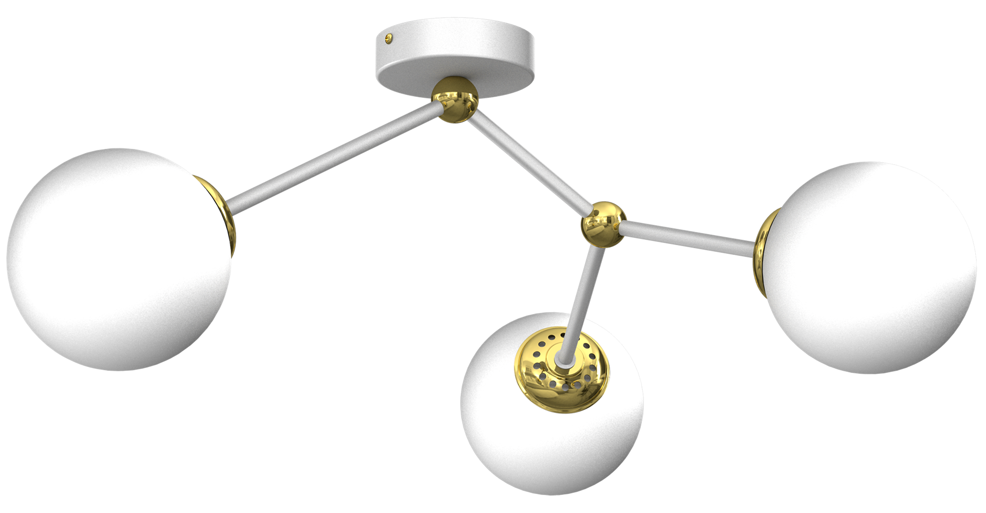 Lampa sufitowa JOY 3 to wyjątkowe połączenie eleganckiego białego szkła i subtelnych złotych akcentów, które nadają wnętrzu lekkości i luksusowego charakteru. Trzy szklane klosze równomiernie rozświetlają przestrzeń, a wysokiej jakości metalowa konstrukcja zapewnia trwałość na lata. To idealny wybór, jeśli szukasz stylowej lampy do salonu, lampy sufitowej do jadalni lub oświetlenia, które stanie się dekoracją samą w sobie.