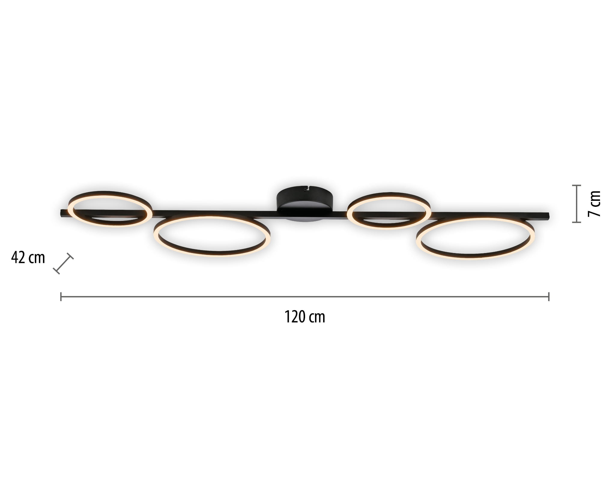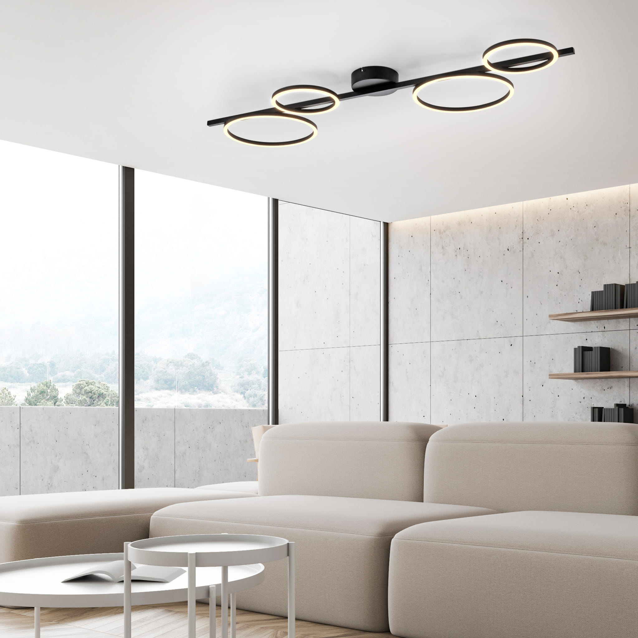 Wydajne zintegrowane źródło LED o mocy 40W generuje aż 4850 lumenów jasnego światła o przyjemnej barwie 3000K, które idealnie sprawdzi się w salonie, kuchni, jadalni czy gabinecie. Czarny kolor i nowoczesny kształt lampy podkreślą charakter wnętrz w stylu nowoczesnym, loftowym czy industrialnym.