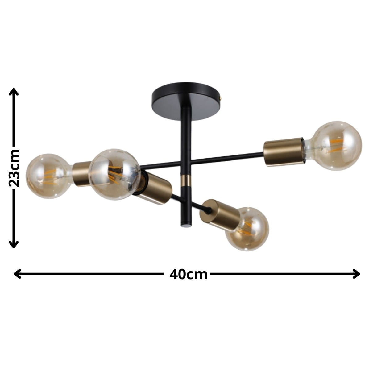 Lampa sufitowa PIANSI 4 to połączenie nowoczesnego designu z funkcjonalnością, która odnajdzie się w każdej aranżacji wnętrza. Wykonana z trwałego metalu w kolorze czarnym, prezentuje się elegancko i ponadczasowo. To czarna lampa sufitowa, która idealnie wpisuje się w aktualne trendy wnętrzarskie – od minimalistycznych po industrialne. Dzięki zastosowaniu popularnych oprawek E27, masz pełną dowolność w doborze źródeł światła – od klasycznych żarówek po energooszczędne rozwiązania LED.