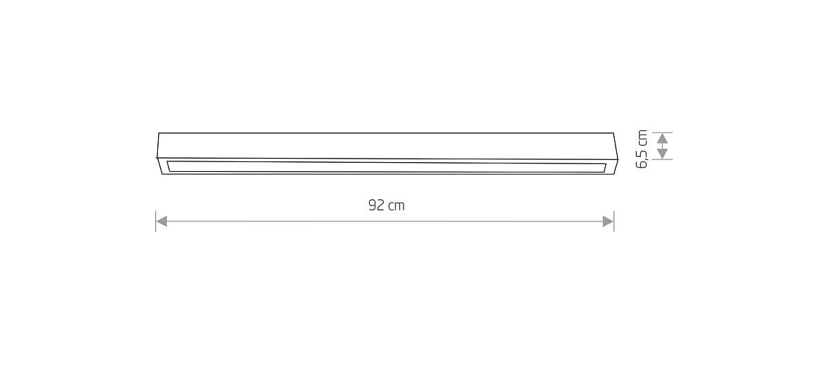 Listwa o długości 92 cm równomiernie oświetla przestrzeń, co sprawia, że jest świetnym wyborem do kuchni, biura, pracowni czy korytarza. Lampa montowana jest bezpośrednio do sufitu, co pozwala zaoszczędzić przestrzeń i utrzymać harmonijny wygląd wnętrza.