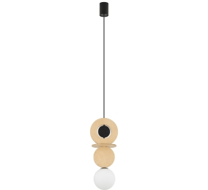 Jeśli szukasz oryginalnej lampy wiszącej, która połączy naturalne materiały z nowoczesnym designem, lampa DROPS WOOD A będzie idealnym wyborem. Wykonana ze sklejki w kolorze naturalnego drewna i matowego, białego szkła, doskonale wpisuje się w popularne trendy: japandi, skandynawski minimalizm oraz eko design.