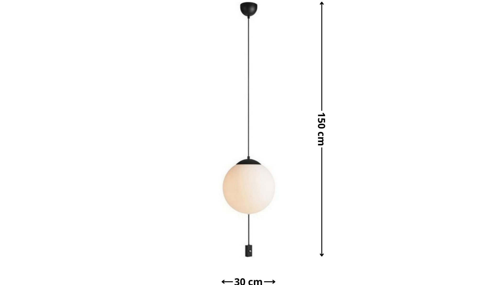- Długi sznur 150 cm ułatwia dopasowanie lampy do wysokich i niskich pomieszczeń