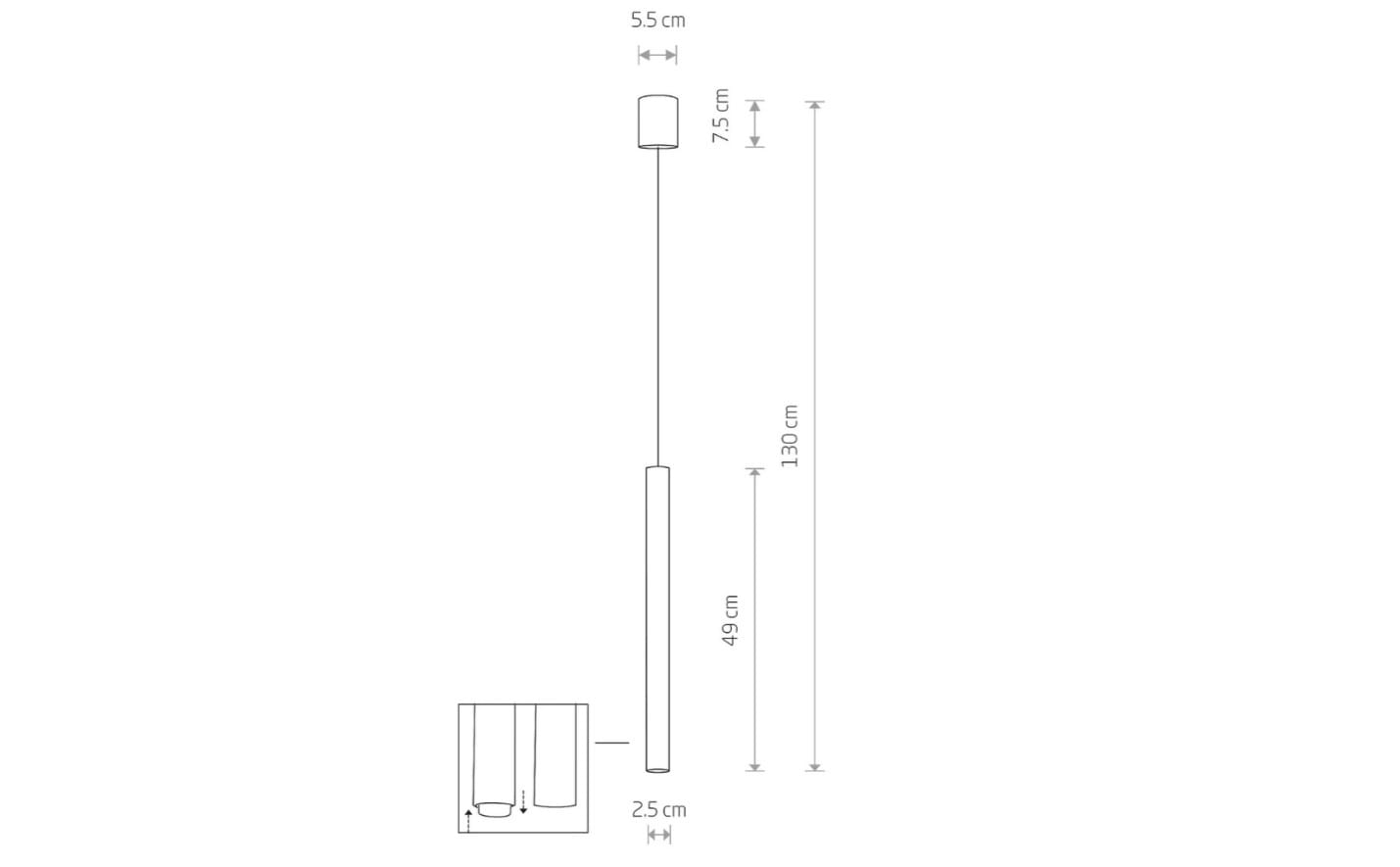 - Wąski, podłużny klosz – tylko 2,5 cm średnicy – daje elegancki, punktowy strumień światła
