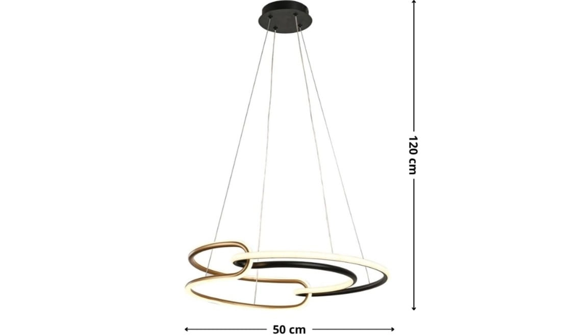- Regulowana wysokość do 120 cm – zyskujesz idealne dopasowanie do wysokości Twojego pomieszczenia i konkretnego mebla, nad którym wisi produkt.