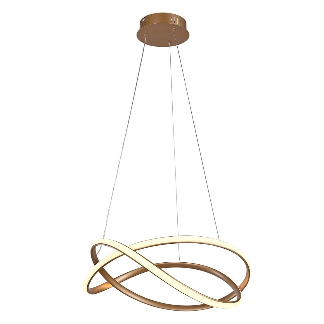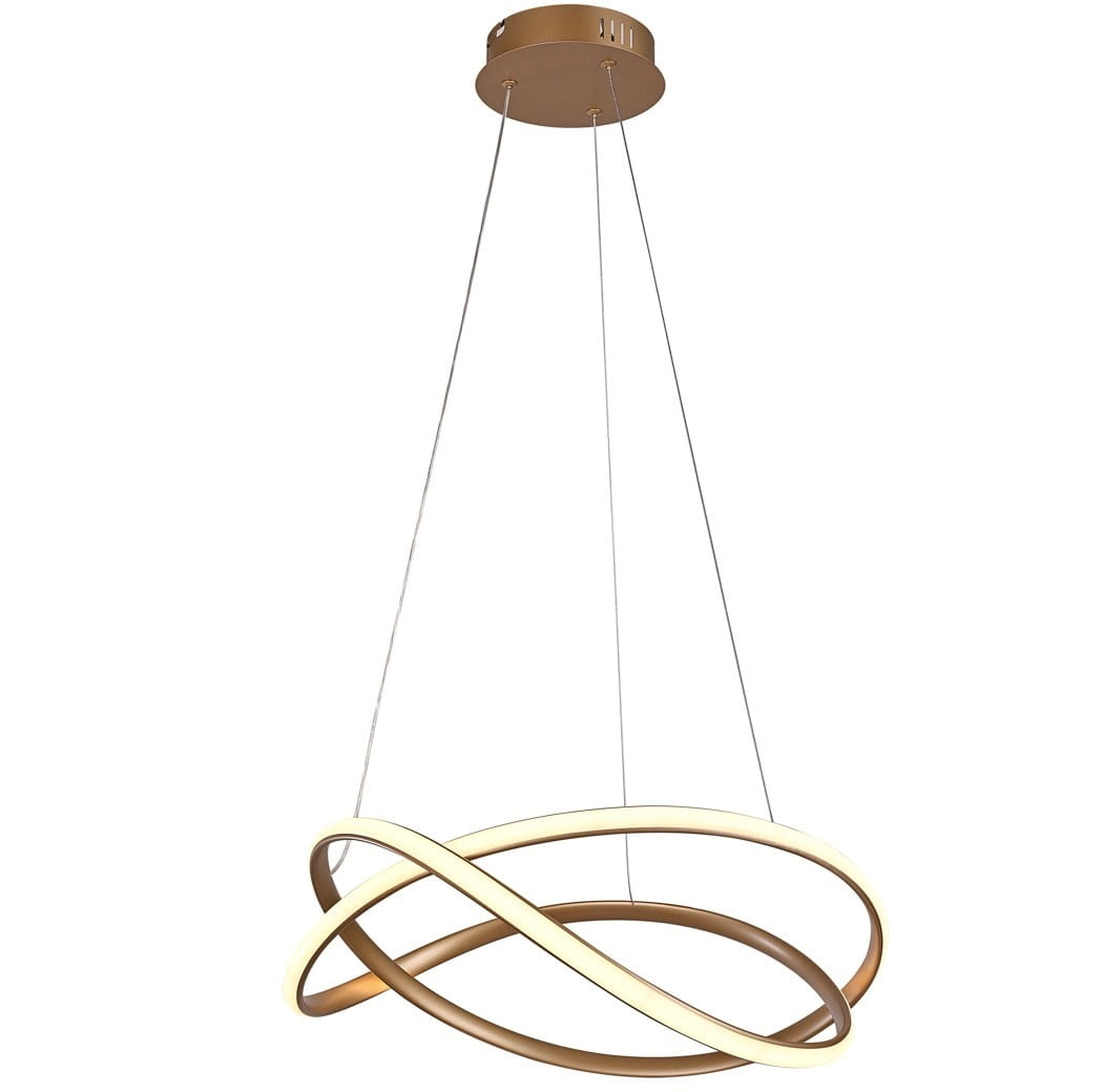 Ten nowoczesny żyrandol LED to znacznie więcej niż zwykłe źródło blasku – to rzeźbiarska forma, która staje się sercem pomieszczenia. Złota oprawa wisząca o unikalnym kształcie splecionych pierścieni wprowadza luksusowy wystrój sypialni lub salonu, dbając o optyczne powiększenie przestrzeni dzięki lekkiej, ażurowej konstrukcji.