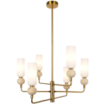 Ten żyrandol nowoczesny to połączenie surowości metalu z delikatnością szkła, tworzące efektowne oświetlenie w każdym pomieszczeniu. Dzięki zastosowaniu sześciu punktów świetlnych, oprawa wisząca zapewnia optymalne doświetlenie nawet większych przestrzeni, wpisując się idealnie w luksusowy design współczesnych mieszkań. Satynowe wykończenie i trwała konstrukcja sprawiają, że produkt staje się centralnym punktem dekoracyjnym, podkreślając wystrój salonu.
