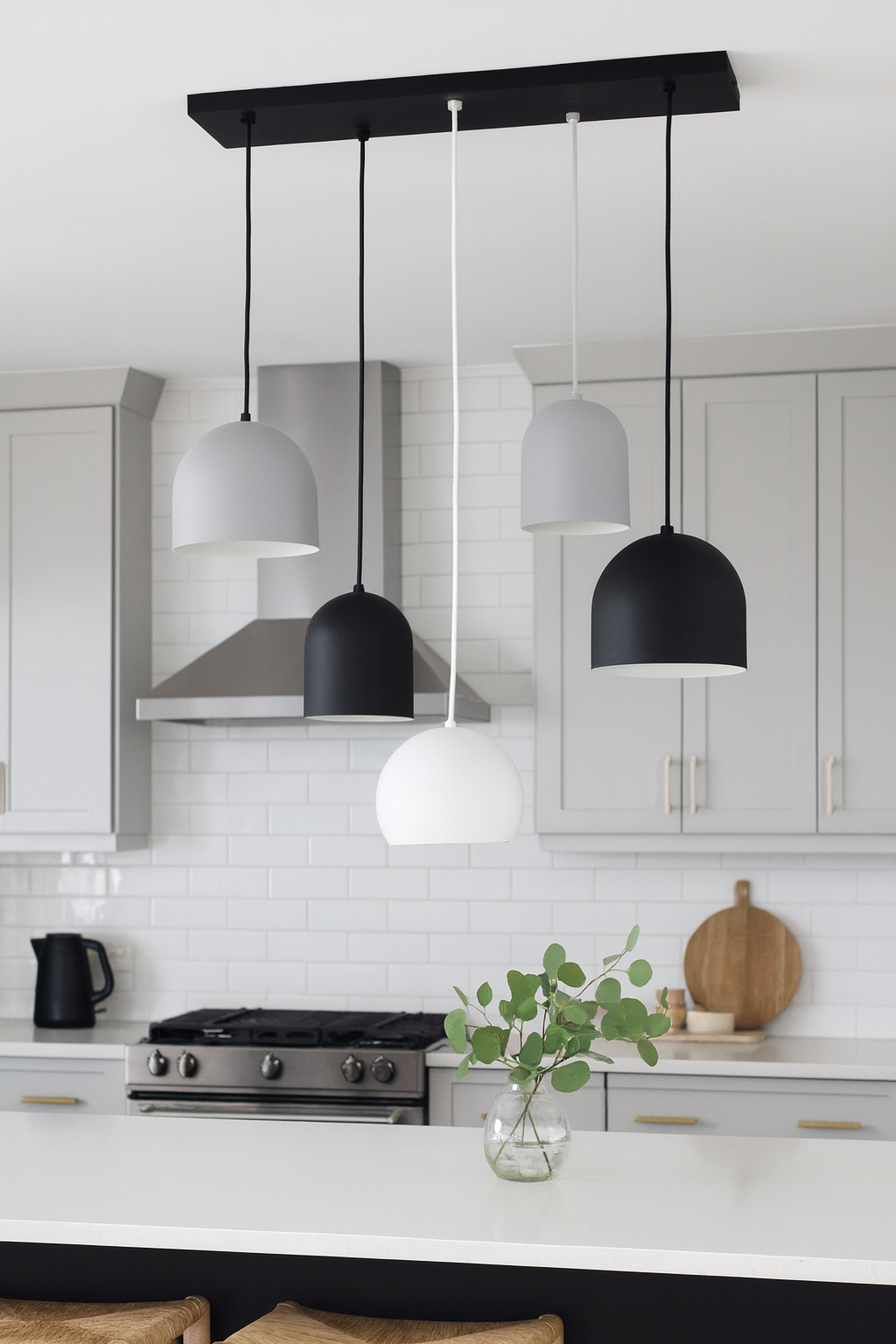 Zestawienie czarnego stelaża z kloszami w odcieniach czerni, szarości i bieli nadaje lampie wyjątkowy charakter, a jednocześnie sprawia, że łatwo wkomponować ją w różne aranżacje – od minimalistycznych, przez skandynawskie, aż po lekkie loftowe wnętrza. To nowoczesna lampa wisząca nad stół, która podkreśla design pomieszczenia, nie przytłaczając go.