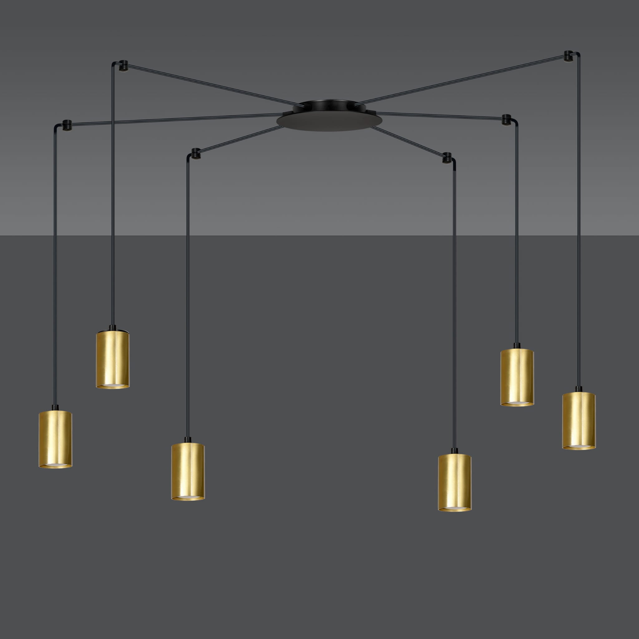 Lampa sufitowa wisząca TRAKER 6 czarna, złota