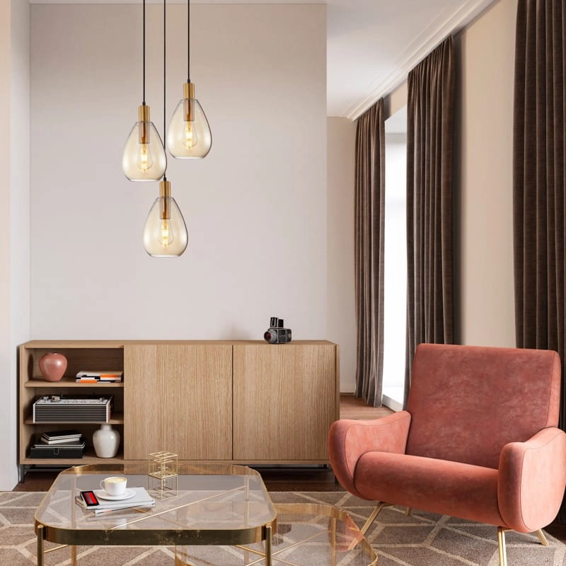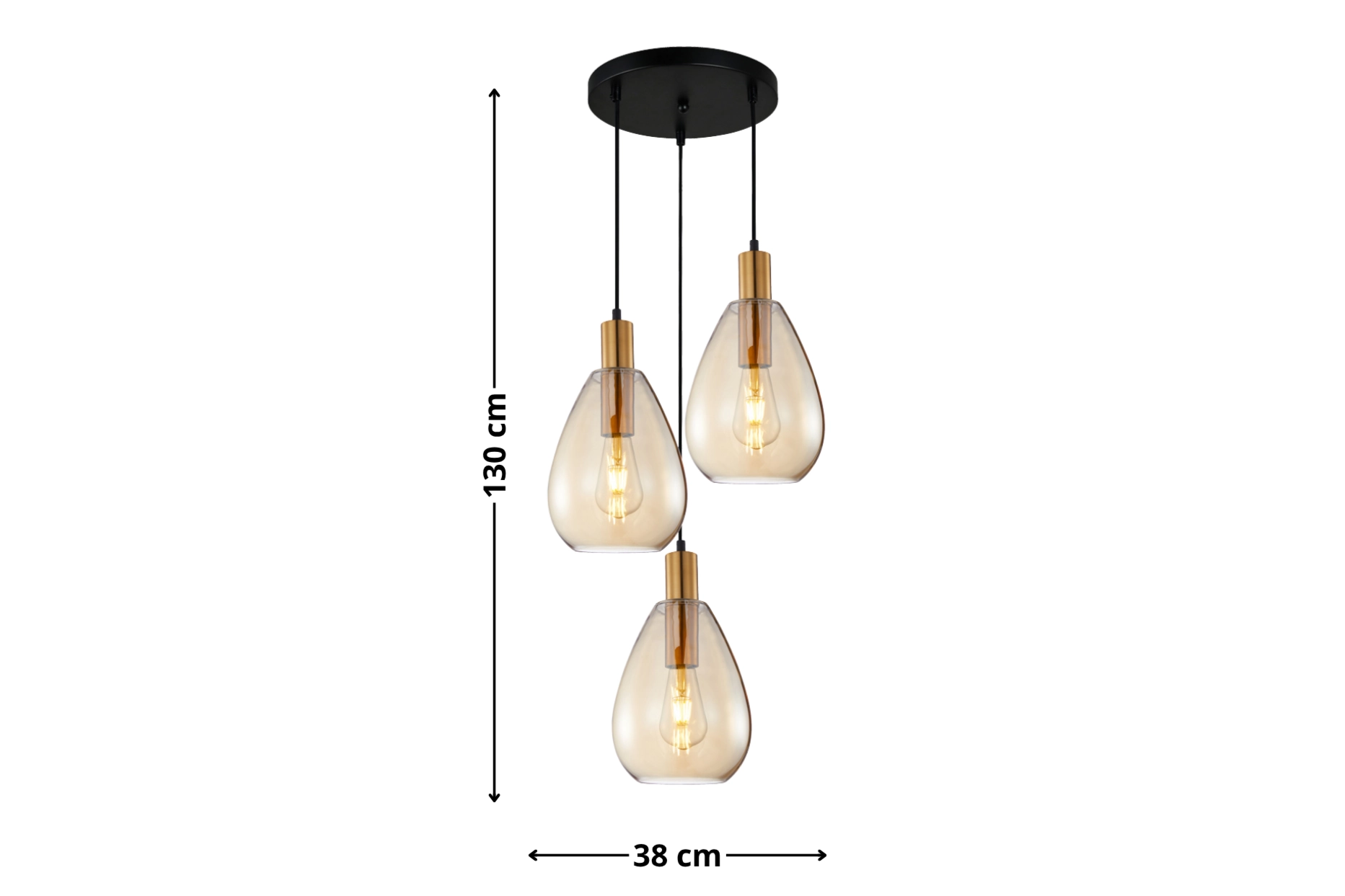 Odpowiednia oprawa to serce każdego pomieszczenia. Ten model sprawia, że nastrojowe oświetlenie salonu staje się rzeczywistością, łącząc w sobie szlachetny mosiądz i bursztynowy żyrandol, który emituje kojący blask. Dzięki szerokiej średnicy i trzech punktach świetlnych, produkt ten wypełnia przestrzeń elegancją i funkcjonalnością.