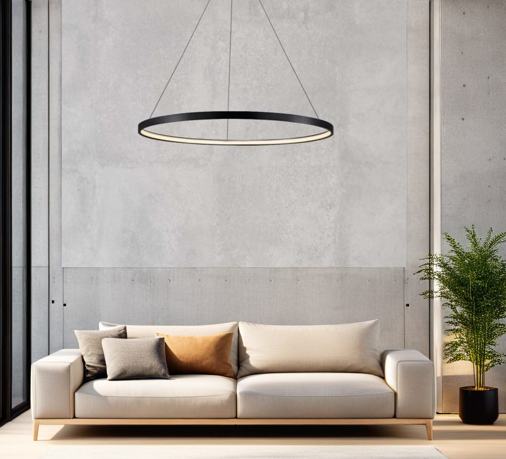 Lampa wisząca RING 40 cm czarna 4000K doskonale sprawdzi się w takich pomieszczeniach jak salon, jadalnia, kuchnia, biuro czy pokój dziecięcy. Jej uniwersalny design i neutralna barwa światła wprowadzą do wnętrza przyjemną atmosferę, sprzyjającą zarówno relaksowi, jak i pracy.