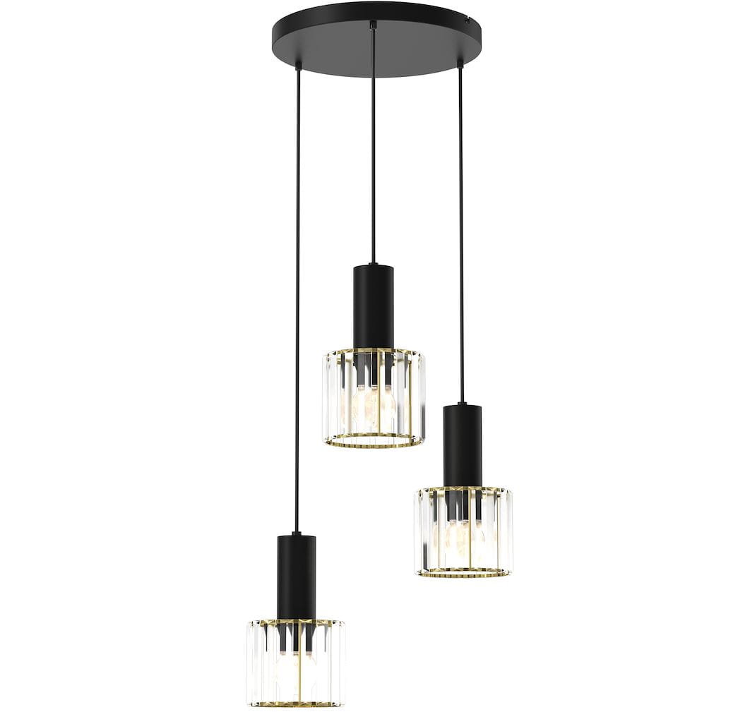 Lampa wisząca z serii Milagro to wyjątkowa propozycja dla tych, którzy szukają kompromisu między klasyczną formą a nowoczesną estetyką. Trzy kryształowe klosze z matowym, czarnym wykończeniem w połączeniu ze złotymi detalami przyciągają wzrok i dodają wnętrzu charakteru.