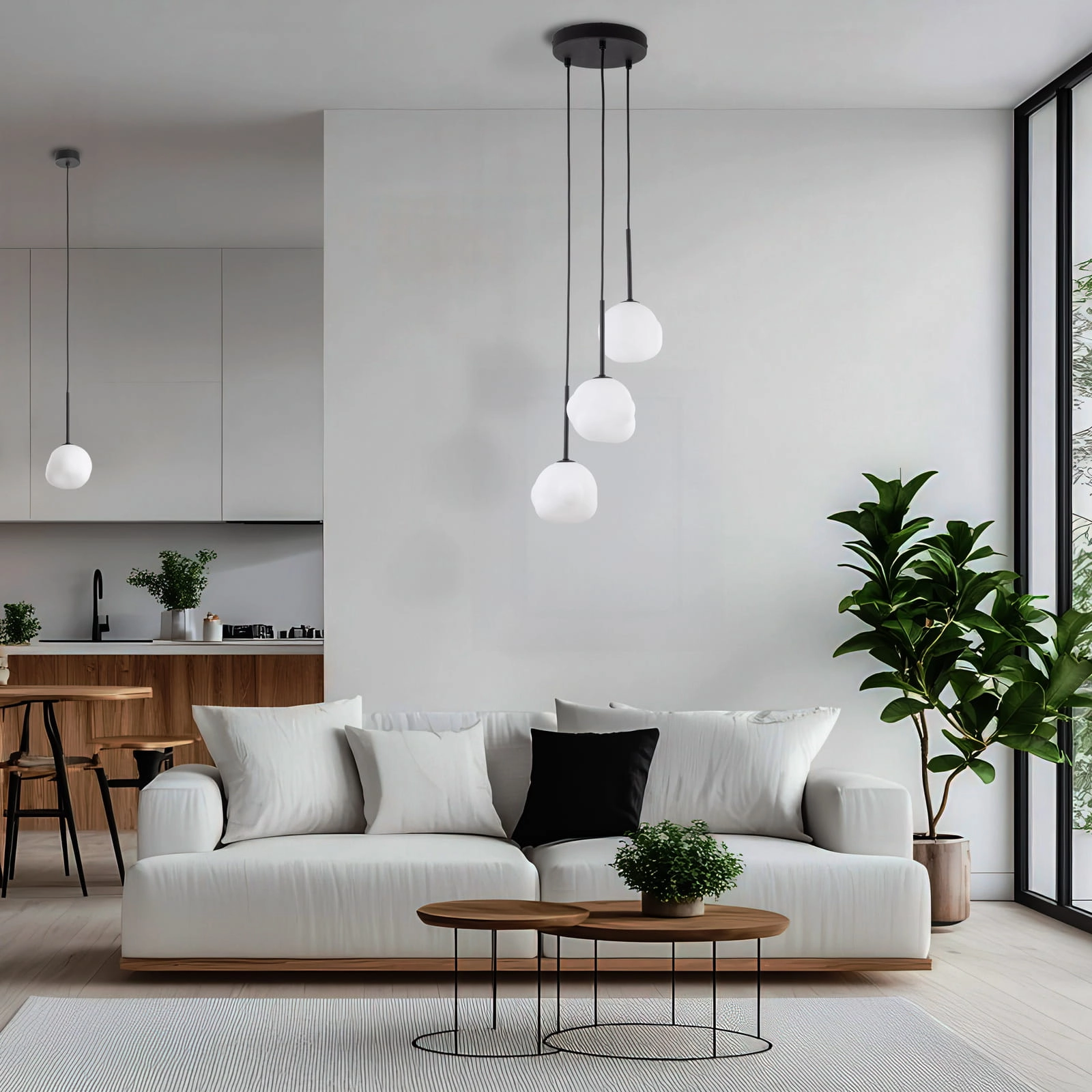 ✨ Opalowa lampa wisząca z białymi kloszami – miękkie światło do salonu i jadalni
