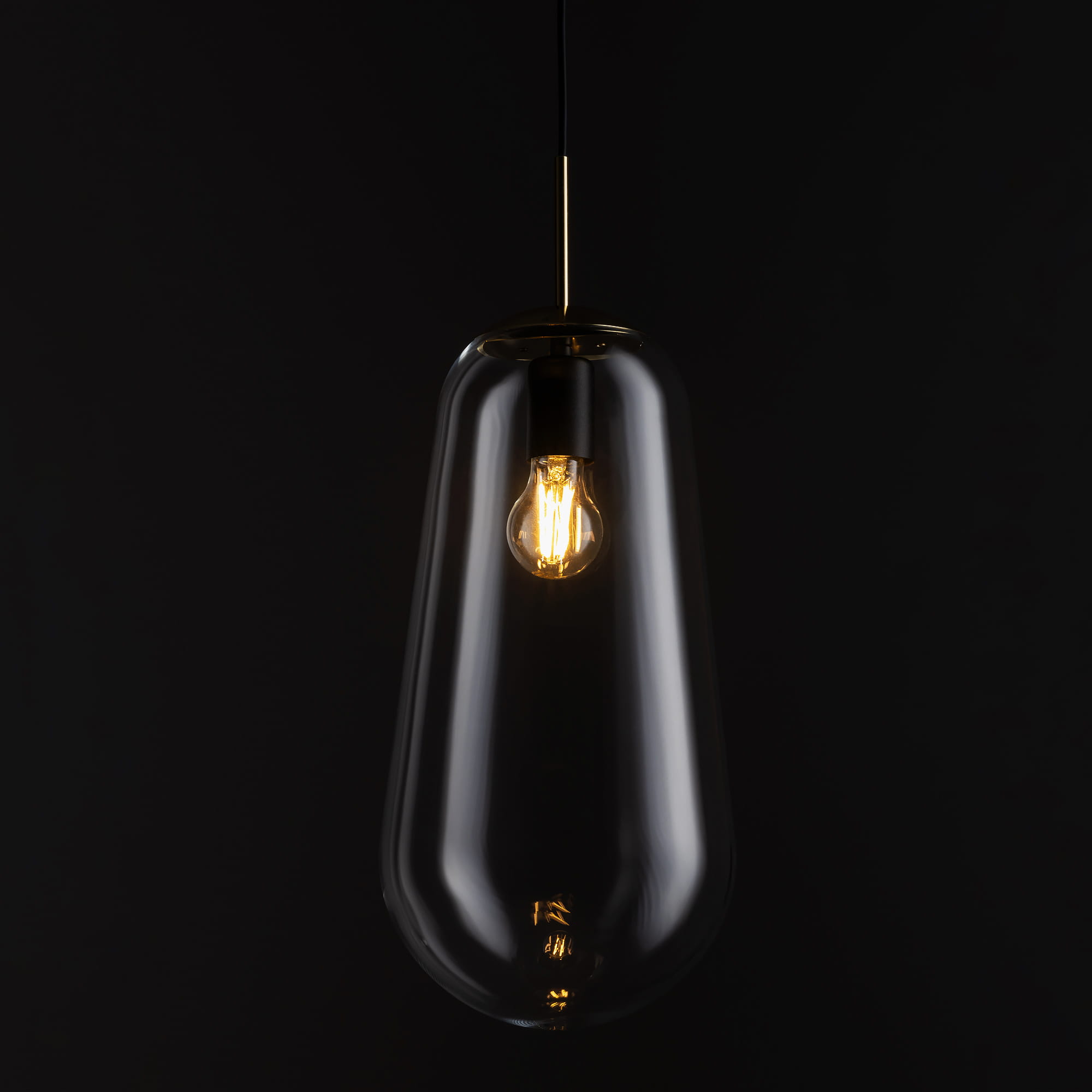 Jeśli szukasz stylowej lampy wiszącej do salonu lub jadalni, model PEAR L będzie doskonałym wyborem. To nie tylko źródło światła, ale też designerska dekoracja, która przyciąga uwagę nawet w ciągu dnia. Szklany klosz w formie dużej, szklanej kropli subtelnie rozprasza światło, tworząc przyjemną atmosferę – zarówno podczas codziennego odpoczynku, jak i przyjęć w gronie bliskich.