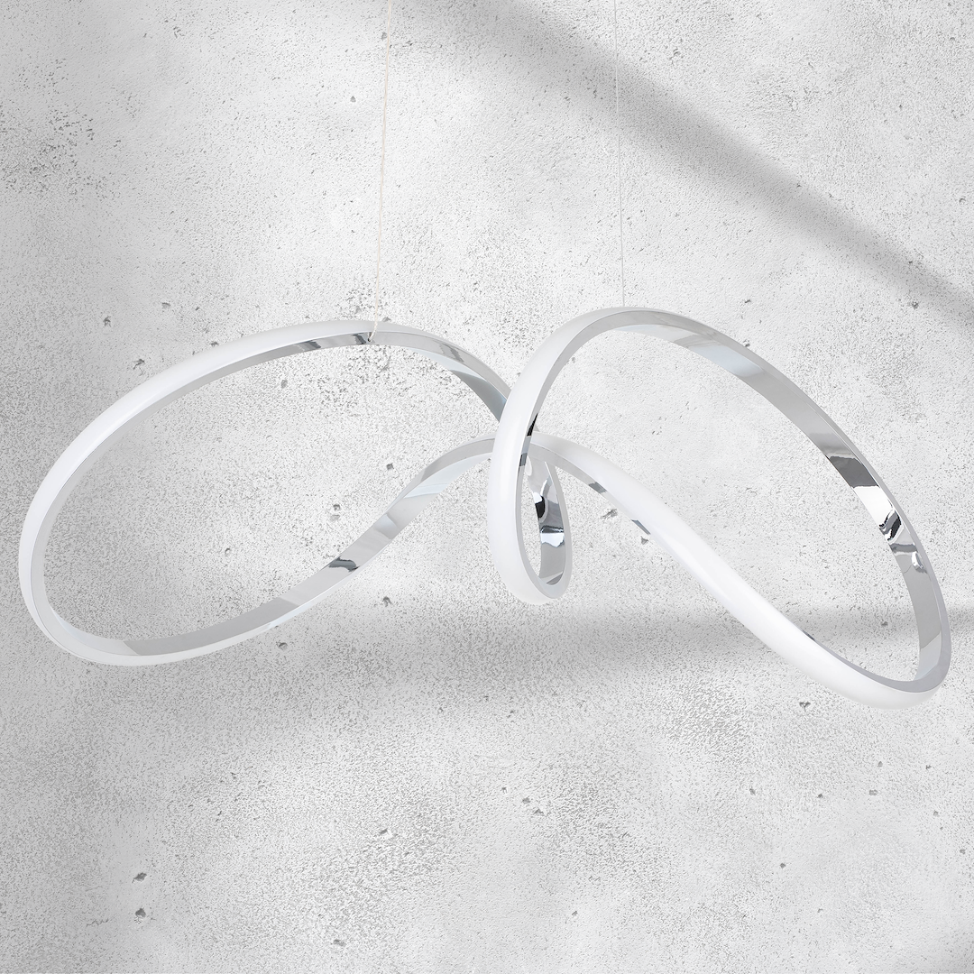 TESORO CHROME to wyjątkowa lampa wisząca LED, która łączy nowoczesny styl z wysoką jakością wykonania. Jej oryginalny kształt i lustrzana powierzchnia stanowią efektowną dekorację wnętrza – zarówno w salonie, jadalni, jak i gabinecie czy nowoczesnym biurze.