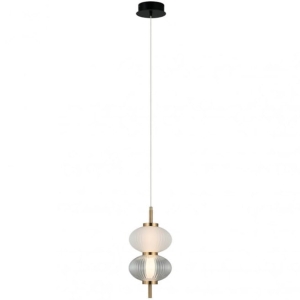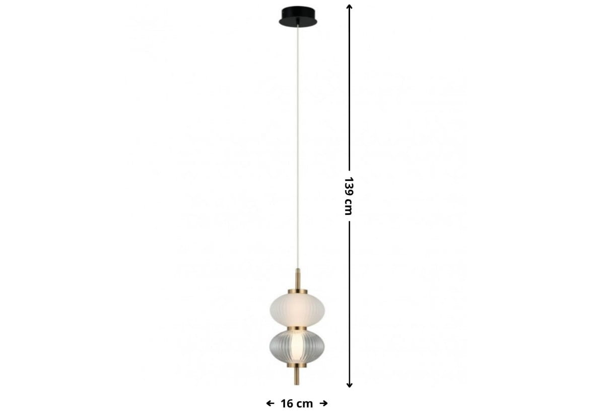 Lampa wisząca TESTA 2 LED to wyjątkowe połączenie szkła, metalu i akrylu, które tworzy efektowną formę pasującą do współczesnych aranżacji. Złote detale w połączeniu z kontrastującymi kloszami – mlecznobiałym i przezroczystym – podkreślają nowoczesny i luksusowy charakter lampy. Świetnie prezentuje się solo lub w zestawie kilku sztuk, tworząc klimatyczne oświetlenie nad stołem lub w strefie relaksu.