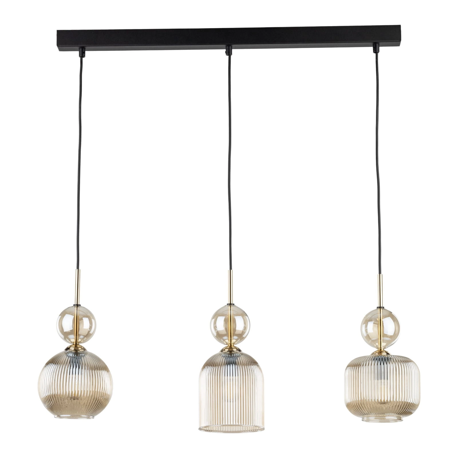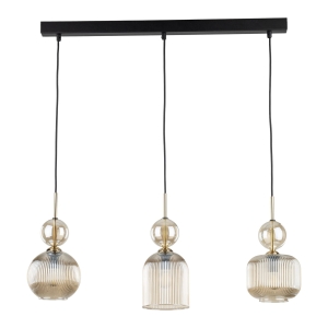 Lampa wisząca SOPHIA 11042 to elegancka lampa sufitowa w stylu glamour z trzema ryflowanymi kloszami w kolorze koniakowym. Model doskonale sprawdzi się jako lampa wisząca nad stół do jadalni lub jako dekoracyjne oświetlenie do salonu. Konstrukcja o szerokości 65 cm zapewnia równomierne doświetlenie większej przestrzeni.