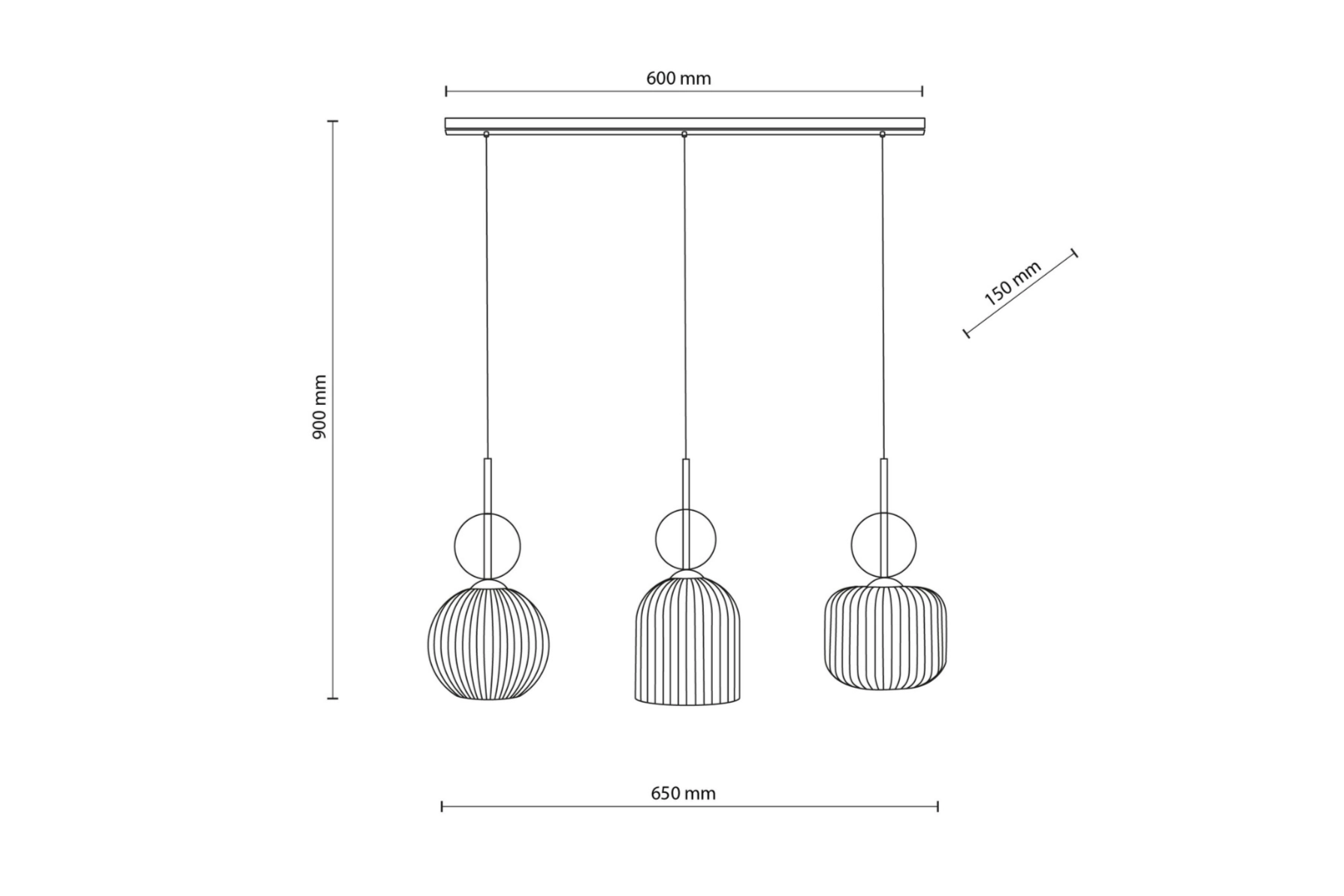 - Szerokość 65 cm Idealnie sprawdza się nad stołem 6–8 osobowym.