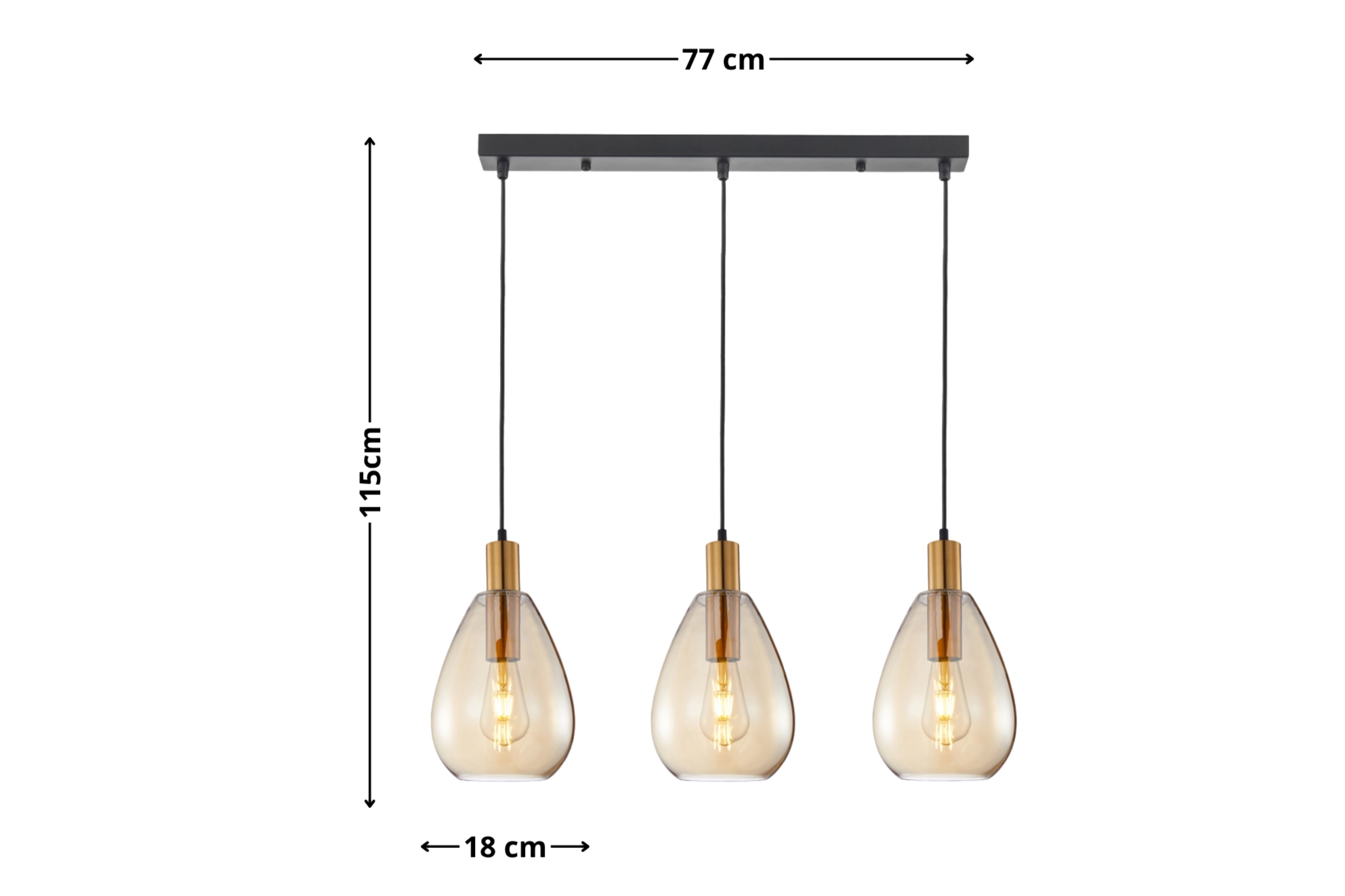 Lampa wisząca na listwie ZULO 3 bursztynowa