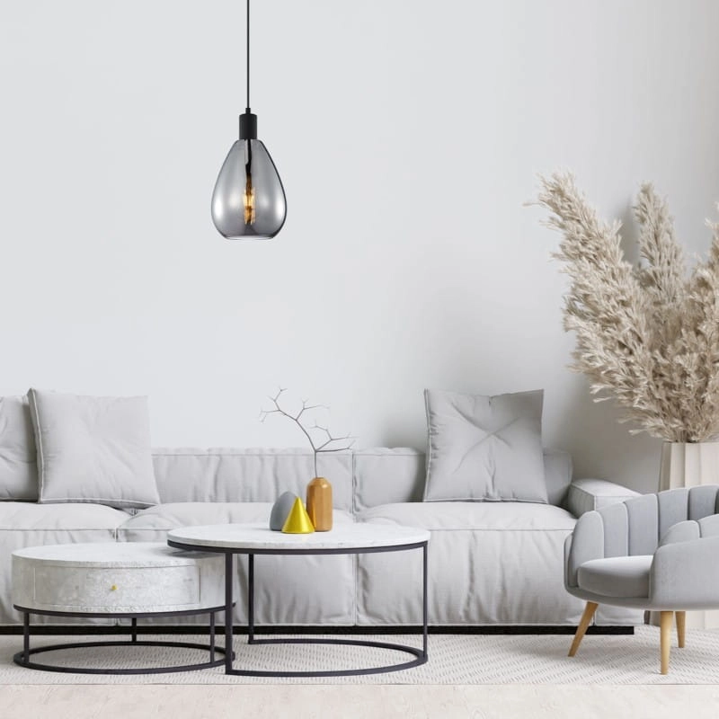 Często spotykanym problemem w dużych otwartych przestrzeniach jest brak charakteru w pokoju oraz niedostateczne oświetlenie głównego blatu, co sprawia, że wnętrze wydaje się zimne i nieprzytulne. Model ten rozwiązuje tę kwestię, wprowadzając dymioną lampę nad stół, która skutecznie eliminuje ciemne rogi stołu. Koniec z jaskrawym blaskiem, który odbija się w naczyniach i męczy wzrok – dymione szkło to Twój sposób na komfort i intymność.