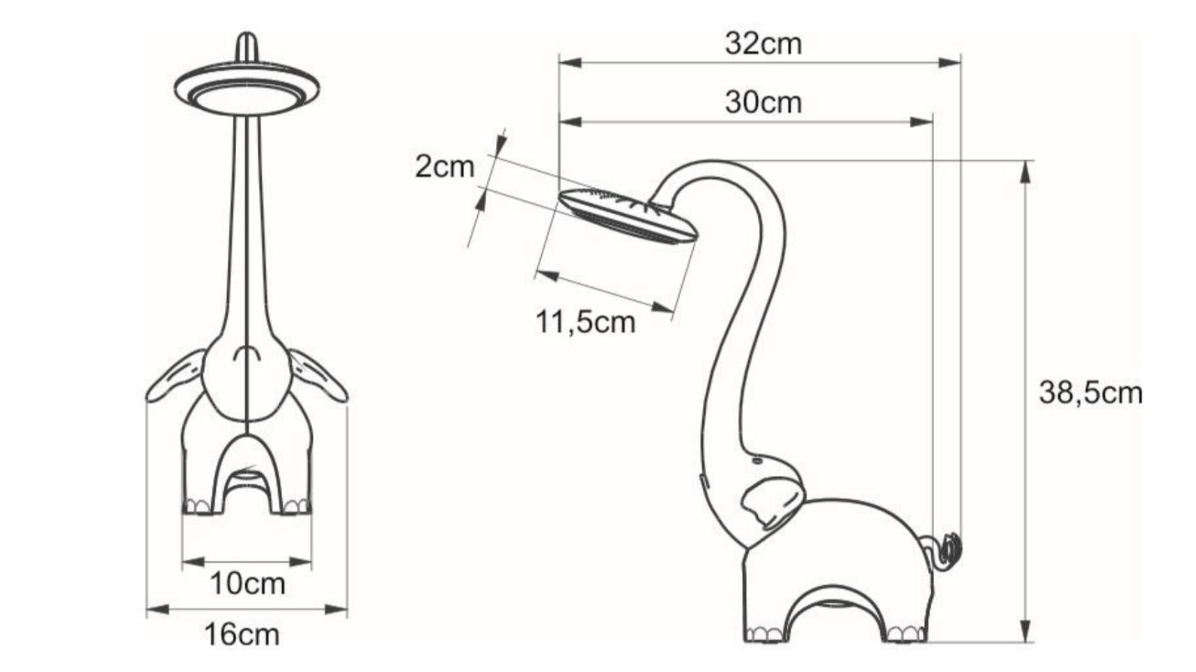 - Dwa źródła światła – główne światło dzienne do nauki oraz oświetlenie nocne LED na brzuszku słonika