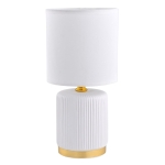 Biała lampa ceramiczna ze złotym wykończeniem doskonale sprawdzi się w sypialni – jako delikatne oświetlenie nocne, lub w salonie – ustawiona na komodzie, stoliku bocznym czy toaletce. Jej klasyczna estetyka w połączeniu z ciepłą barwą żarówki stworzy niepowtarzalny klimat i pozwoli Ci się zrelaksować po długim dniu.