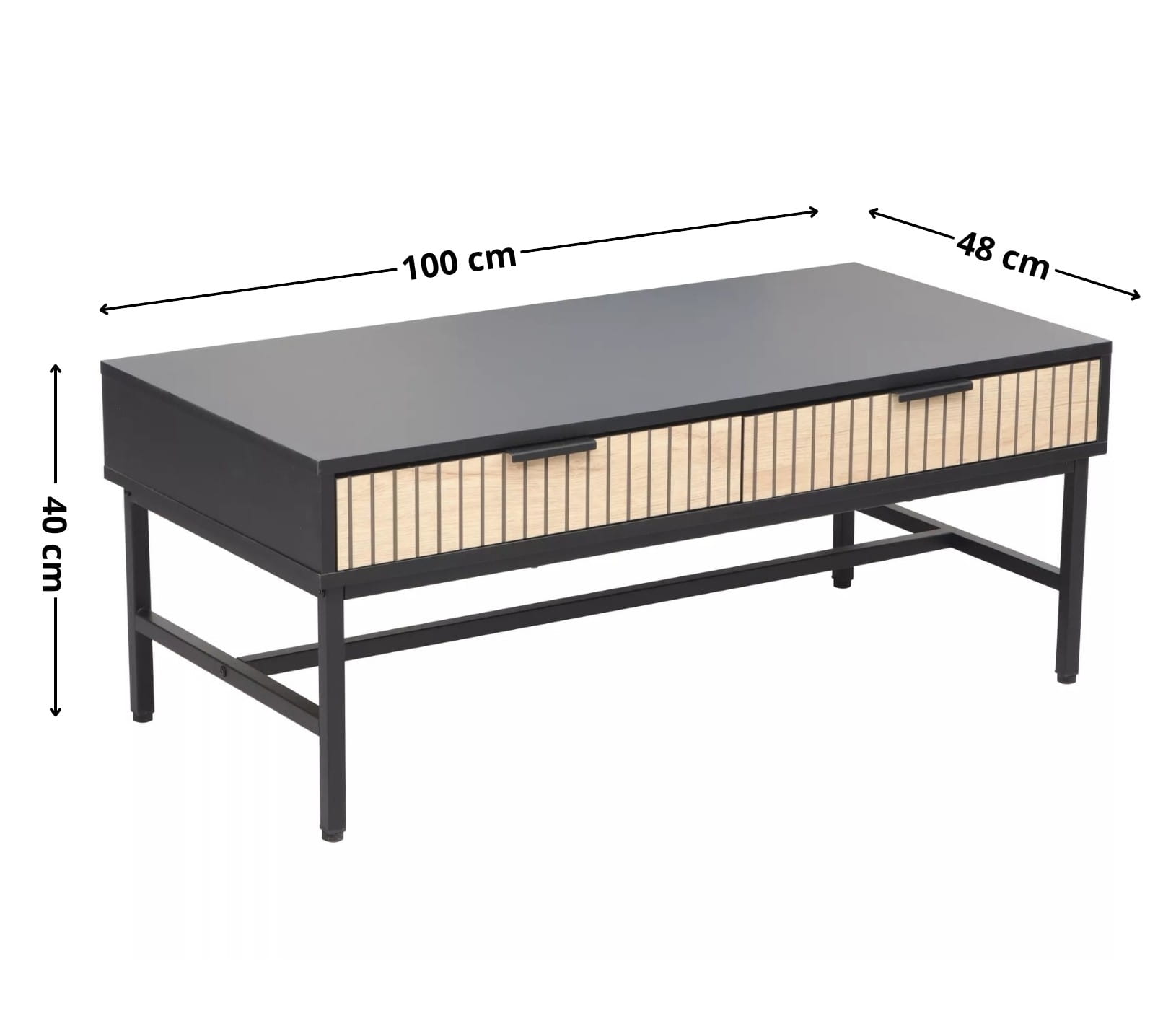 Ława MAGO L1 to wyjątkowe połączenie nowoczesnej formy i praktycznych rozwiązań. Dzięki dwóm szufladom z łatwością uporządkujesz drobiazgi i zyskasz przestrzeń wolną od bałaganu, a szeroki blat posłuży zarówno do ekspozycji dekoracji, jak i do codziennego użytku. Kolorystyka dąb + czarny mat wpisuje się w aktualne trendy, a metalowy stelaż gwarantuje stabilność i długowieczność.
