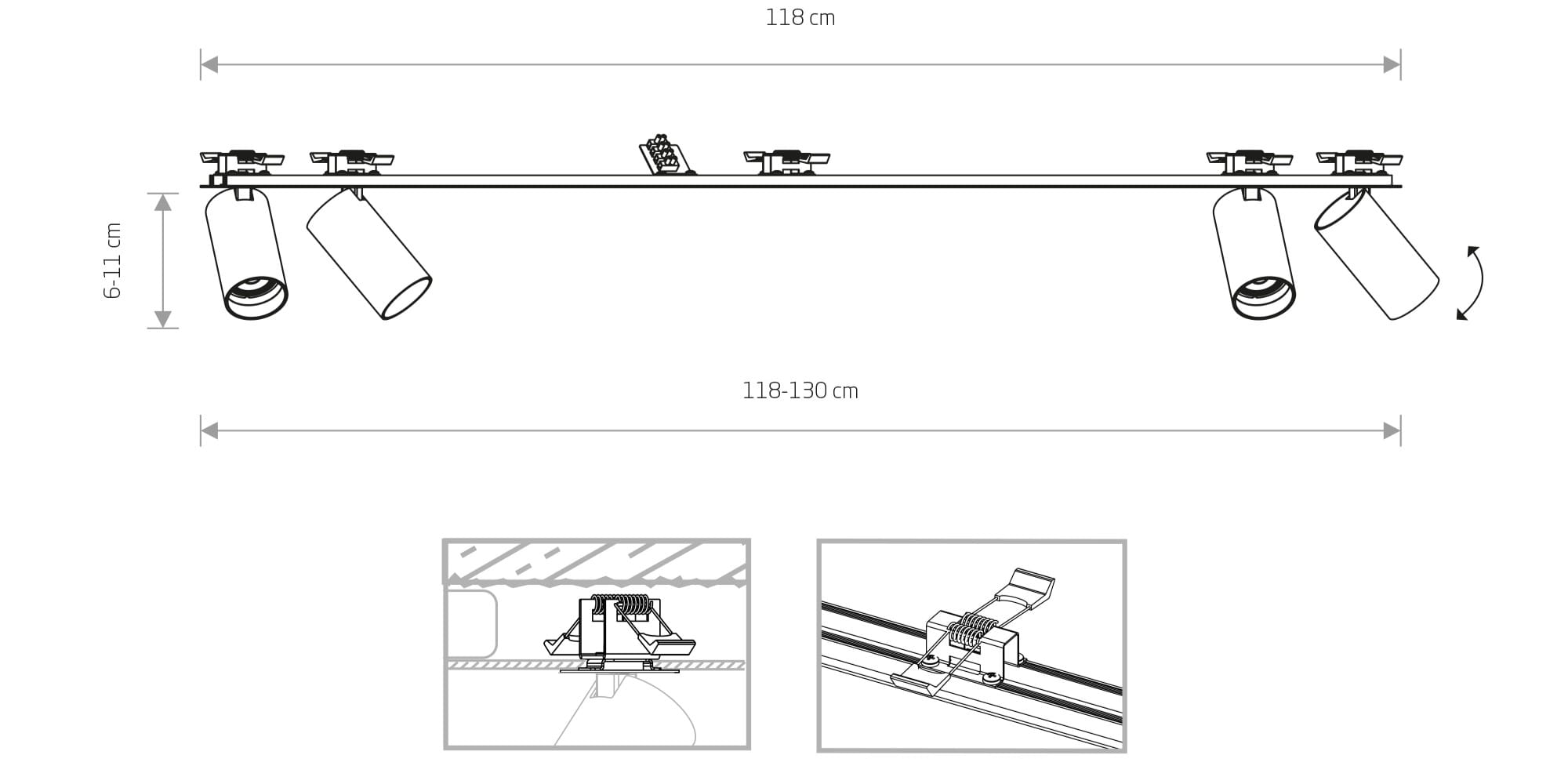 - Regulowane spoty - umożliwiające precyzyjne skierowanie światła