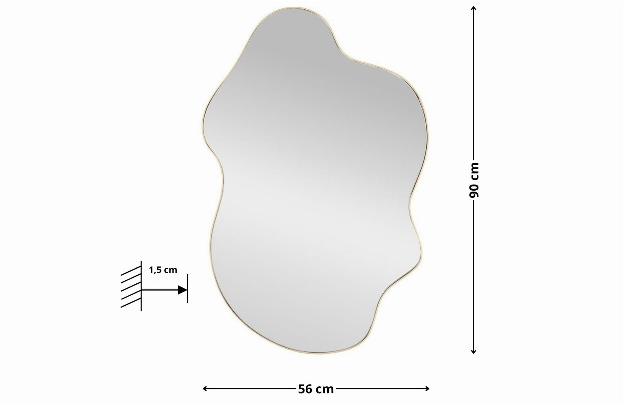 Lustro ścienne dekoracyjne ESSENT złote to połączenie funkcjonalności i eleganckiego wyglądu, które odmieni każde wnętrze. Dzięki subtelnej złotej ramie ze szczotkowanego żelaza, lustro prezentuje się nowocześnie, a jednocześnie ponadczasowo. Niesymetryczny format i wyważone proporcje czynią z niego idealny dodatek zarówno do przestrzeni prywatnych, jak i komercyjnych. To więcej niż tylko lustro – to dekoracja, która przyciąga uwagę.