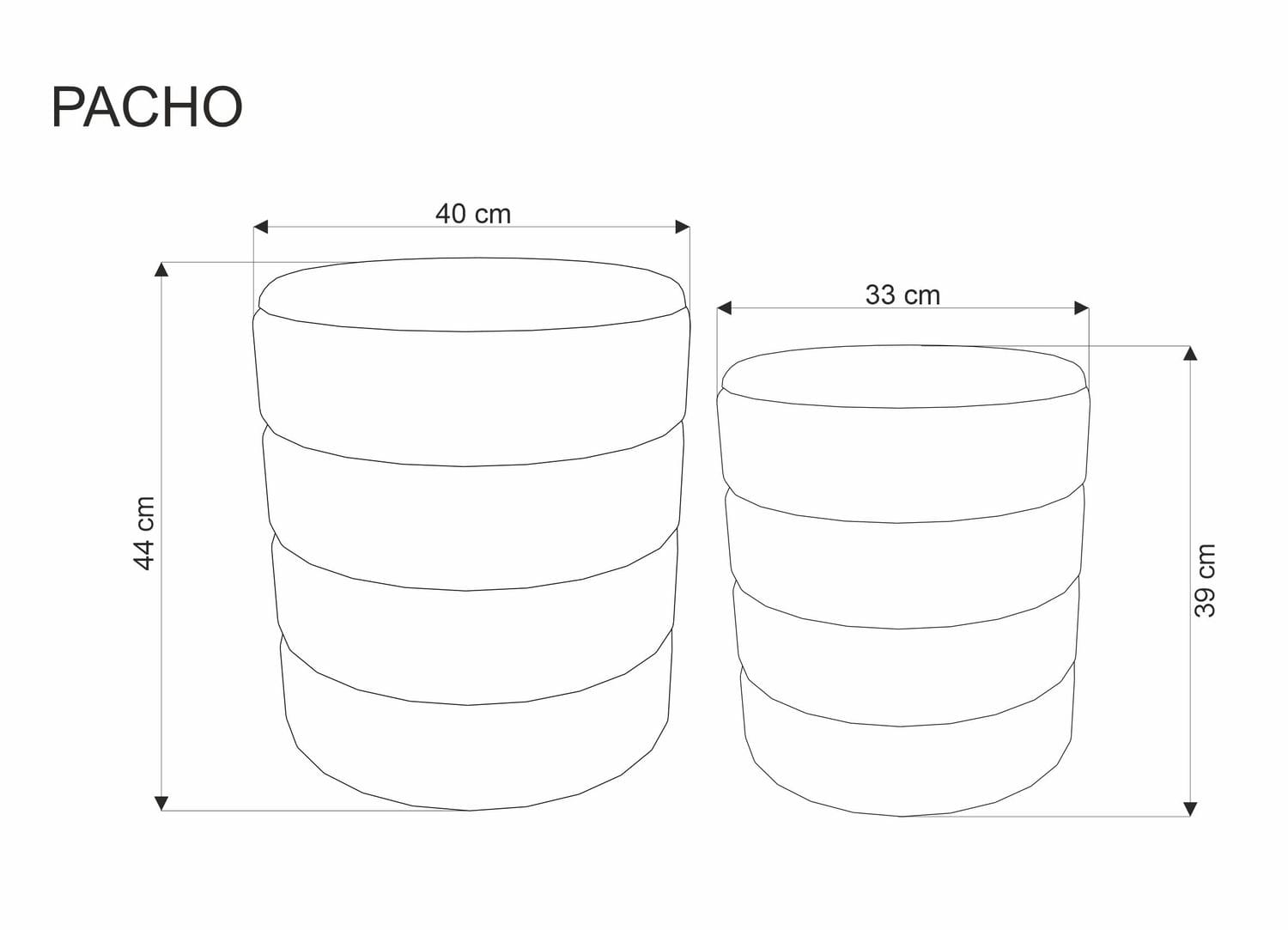 Pufy PACHO to znakomite rozwiązanie dla osób poszukujących praktycznego siedziska do salonu, przedpokoju czy sypialni. Zestaw dwóch elementów w różnych rozmiarach sprawia, że można je dowolnie ustawiać i dopasować do dostępnej przestrzeni.