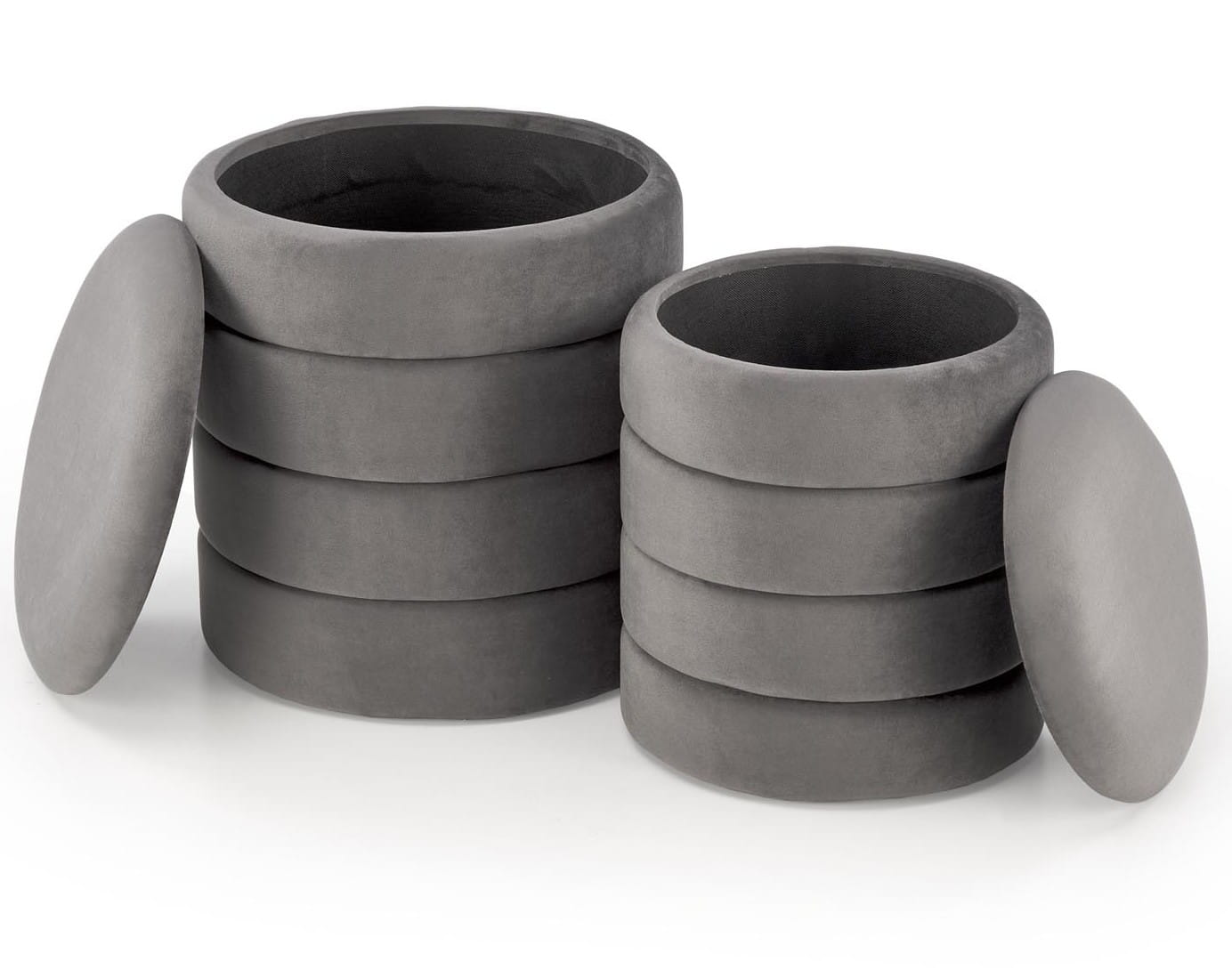 ✨ Zestaw 2 puf PACHO szary velvet – praktyczne i stylowe siedziska z pojemnikiem