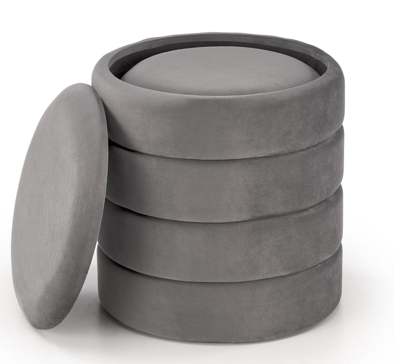 Zestaw 2 puf PACHO to połączenie funkcjonalności, wygody i eleganckiego designu. Te okrągłe pufy z funkcją schowka wykonane z miękkiej, welurowej tkaniny velvet w odcieniu szarości będą idealnym uzupełnieniem Twojego wnętrza. Dzięki uniwersalnemu designowi pufy pasują zarówno do nowoczesnych, jak i loftowych czy glamour przestrzeni. Sprawdzą się jako dodatkowe siedziska, element dekoracyjny lub praktyczny schowek – dokładnie tam, gdzie ich potrzebujesz.