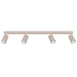 Lampa 4-punktowa w kolorze taupe idealnie sprawdzi się w większych pomieszczeniach – zapewniając intensywne, ale nieprzytłaczające światło. Kolor ten – będący mieszanką beżu i szarości – wprowadza do wnętrza elegancję i harmonię, doskonale wpisując się w styl nowoczesny, loftowy i skandynawski.