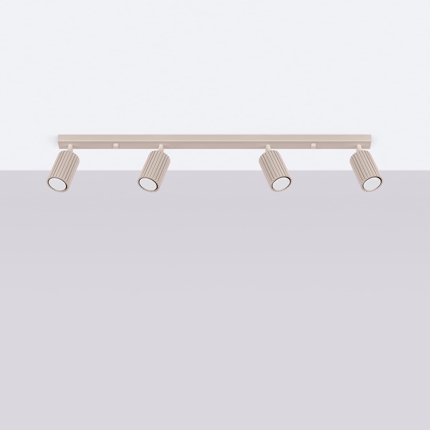 KARBON to kolekcja, która wyróżnia się charakterystyczną ryflowaną strukturą korpusu i surowym, geometrycznym kształtem. Model 4-punktowy w kolorze taupe to idealna propozycja do większych pomieszczeń – zapewnia równomierne oświetlenie i dodaje przestrzeni stylowego charakteru.
