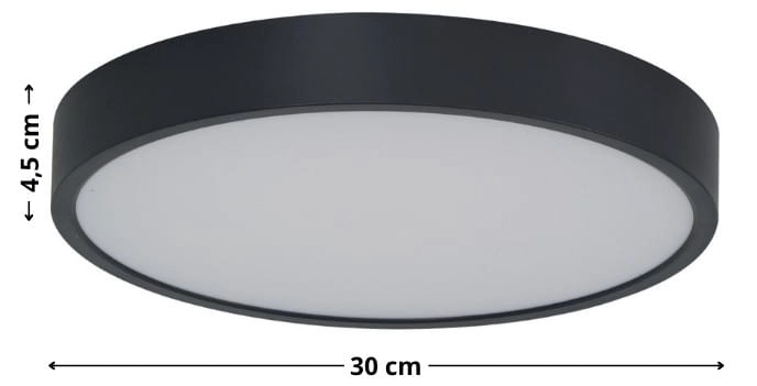 - Niska wysokość 4,5 cm – model przylega blisko sufitu, dzięki czemu pomieszczenie wydaje się wyższe i bardziej przestronne.