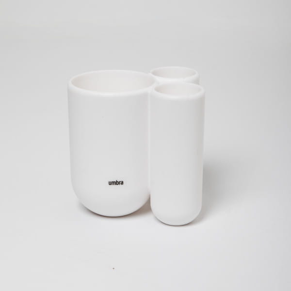 Organizer łazienkowy na szczoteczki TOUCH marki UMBRA to praktyczne rozwiązanie, które pomaga utrzymać idealny porządek przy umywalce. Ten nowoczesny uchwyt na szczoteczki do zębów posiada trzy wygodne przegródki, dzięki którym szczoteczki i pasta do zębów mają swoje miejsce. Kompaktowy rozmiar sprawia, że organizer doskonale sprawdzi się zarówno w małej łazience, jak i w większej przestrzeni.