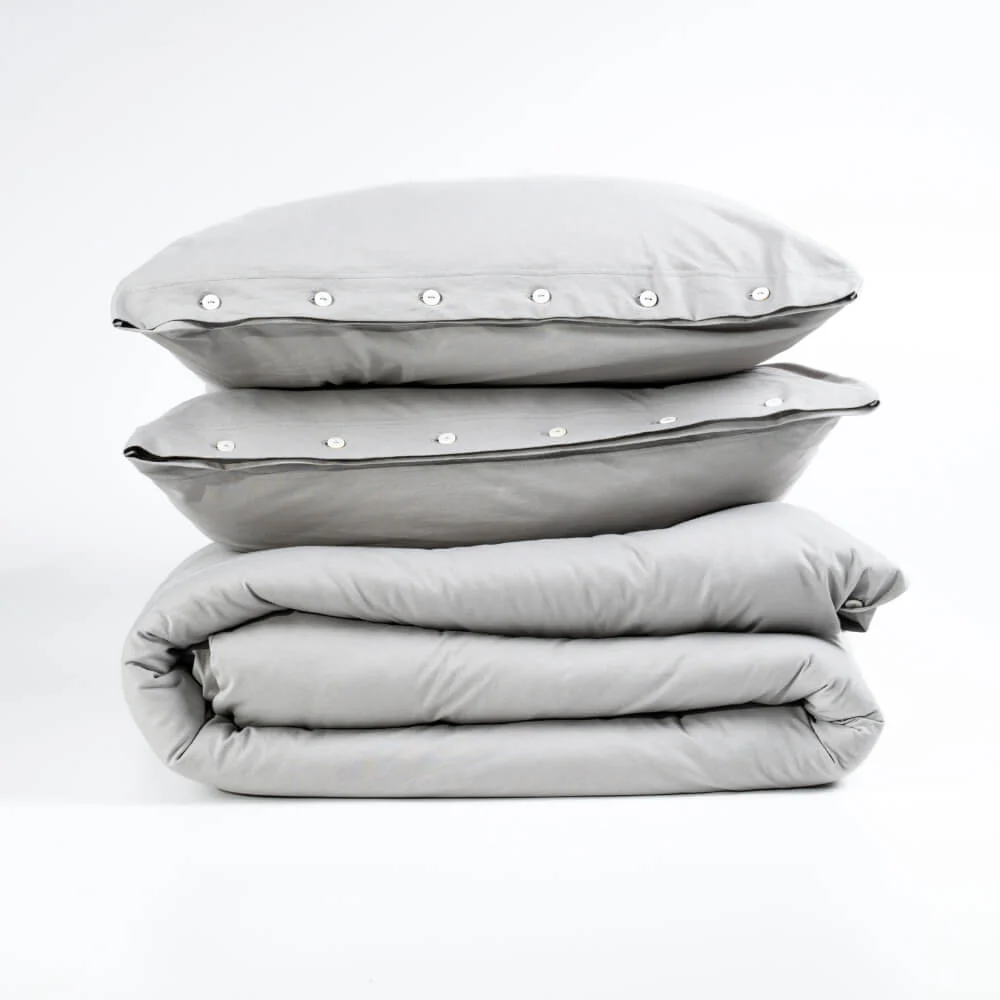 Szary kolor wprowadza do sypialni spokój i równowagę. To pościel 160x200 do nowoczesnej sypialni, która doskonale komponuje się z jasnymi wnętrzami w stylu skandynawskim, minimalistycznym lub klasycznym. Subtelne detale w postaci guzików z masy perłowej podkreślają elegancki charakter zestawu.